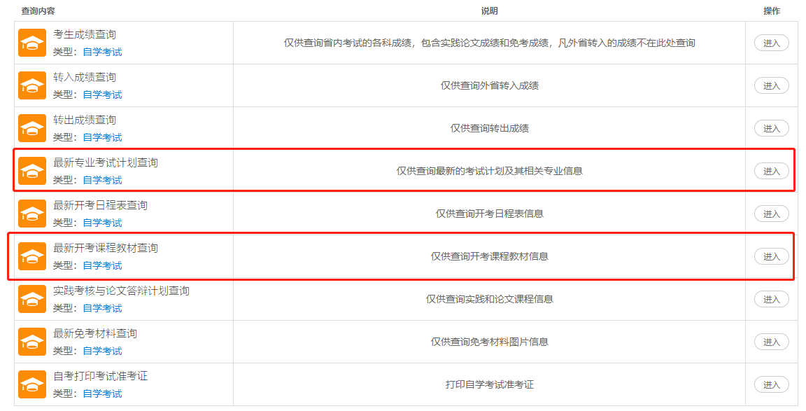 由于江苏自考专业计划所包含的科目不同,所以考试需要的教材也不同。考生可登录江苏省教育考试公众信息服务平台查询报考专业的专业计划及课程教材(如下图所示),或者直接点击→2021年10月江苏自考专业及主考院校一览表,找到所报考专业的专业计划,并点击→2021年10月江苏自考开考课程教材计划表,通过课程代码或名字搜索相应的教材版本。