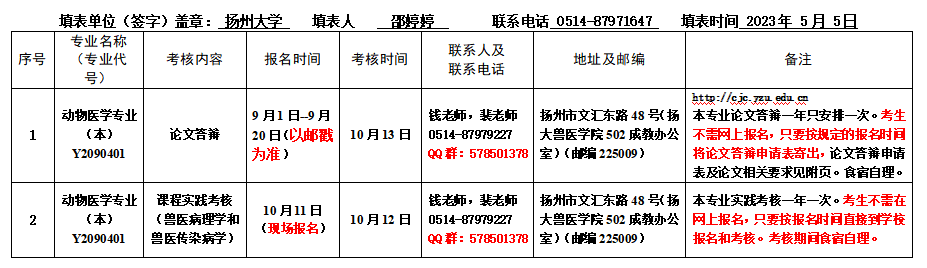 2023年下半年扬州大学社会自考专业论文答辩、实践环节考核日程