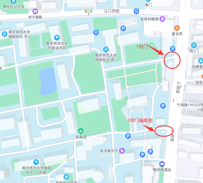 南京市鼓楼区宁海路122号南京师范大学随园校区3号门值班室。