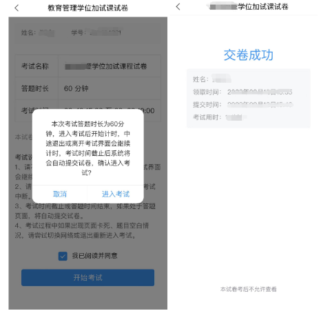 (2)登录后,点击“消息”进入移动端,在“收件箱”中可查看到考试通知,点击进入查看考试通知,点击试卷即可进入考试页面。