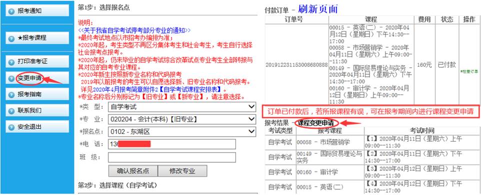 13、订单付款成功后,若发现所报课程有误,需填写课程变更申请表,可修改报考课程,待审核通过后,才能变更。报名点不得变更。