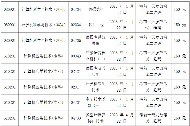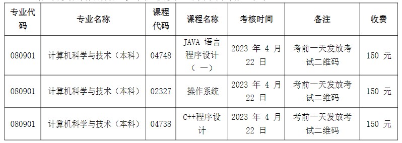 3、计算机专业实践课程考核时间为2023年4月22日;