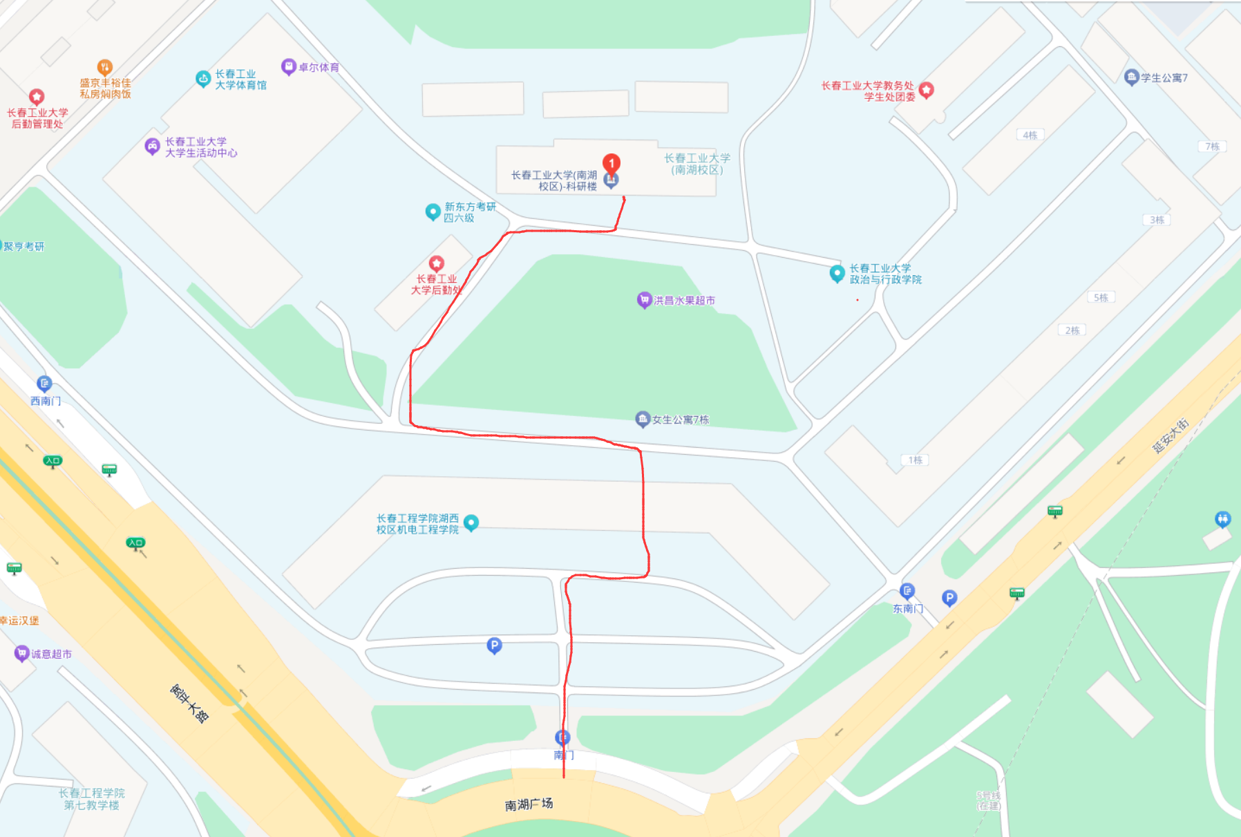 前往教学科研楼路线