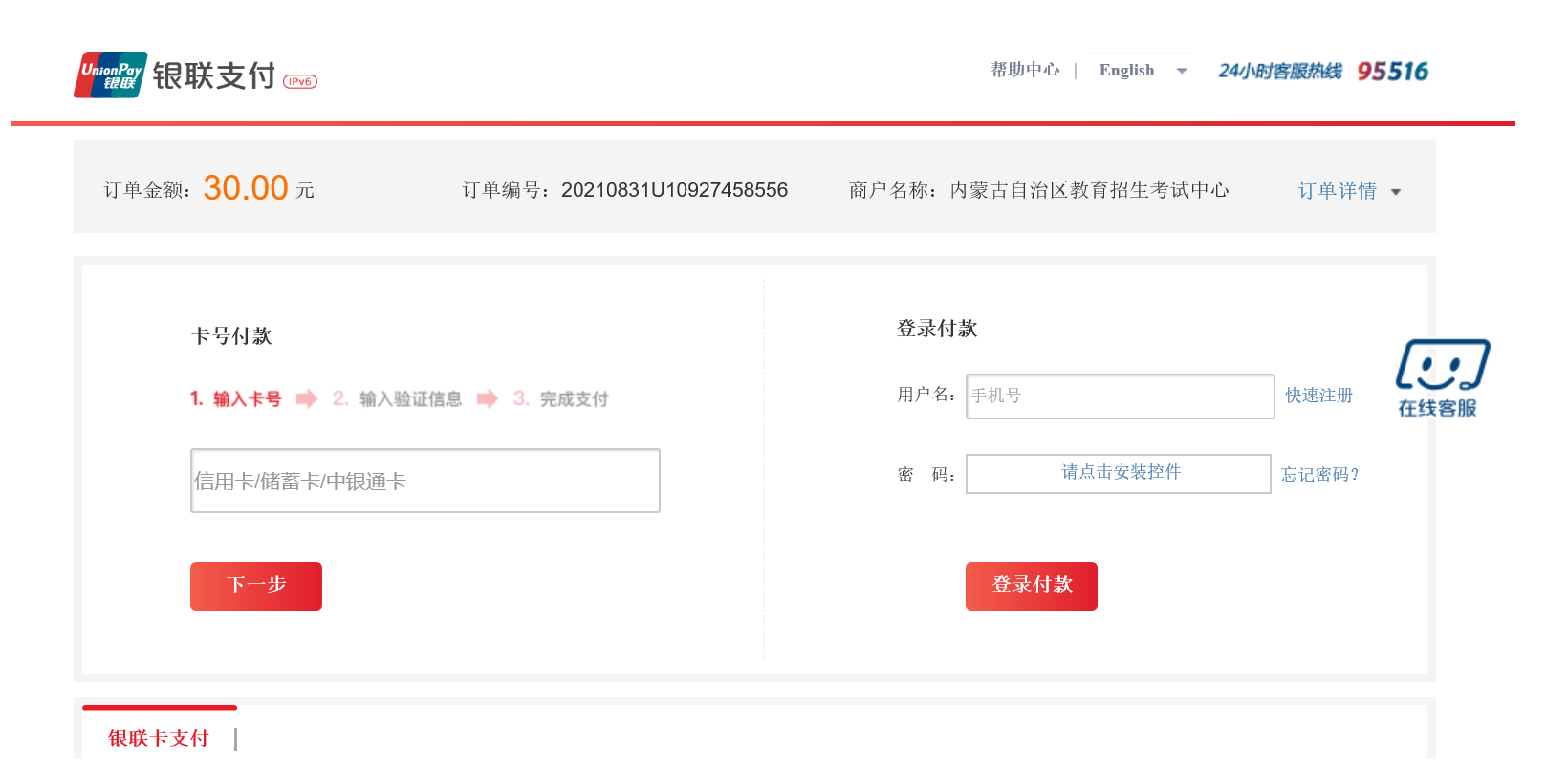 2021年10月内蒙古自治区自学考试网上支付使用指南