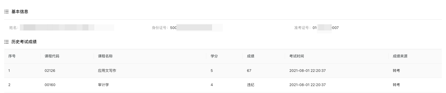 历史成绩查询