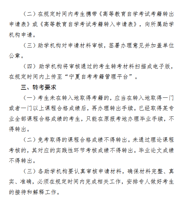 宁夏2026年高等教育自学考试省际转考工作通告