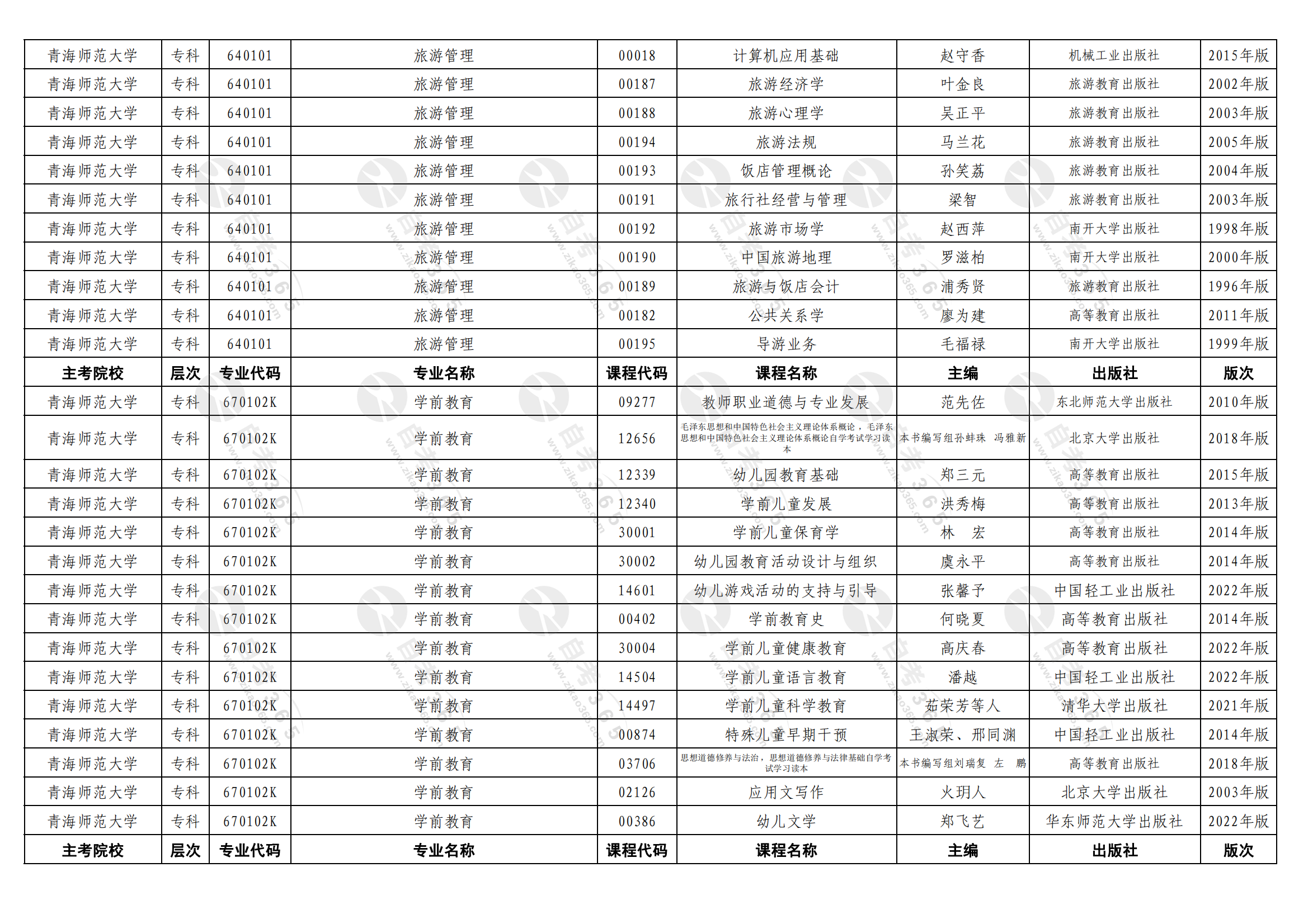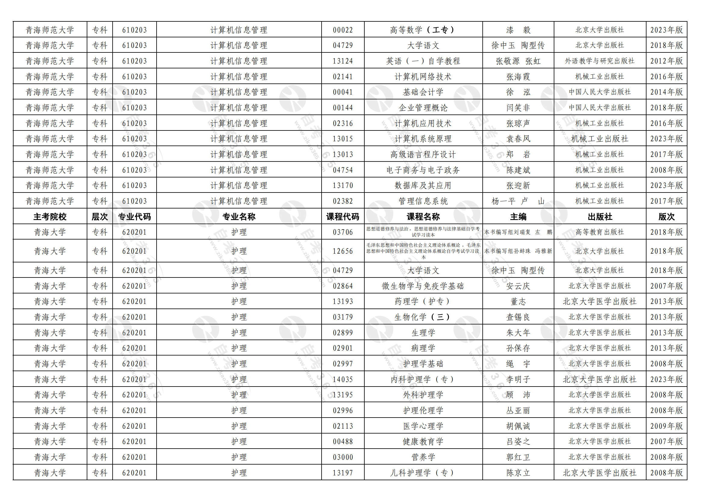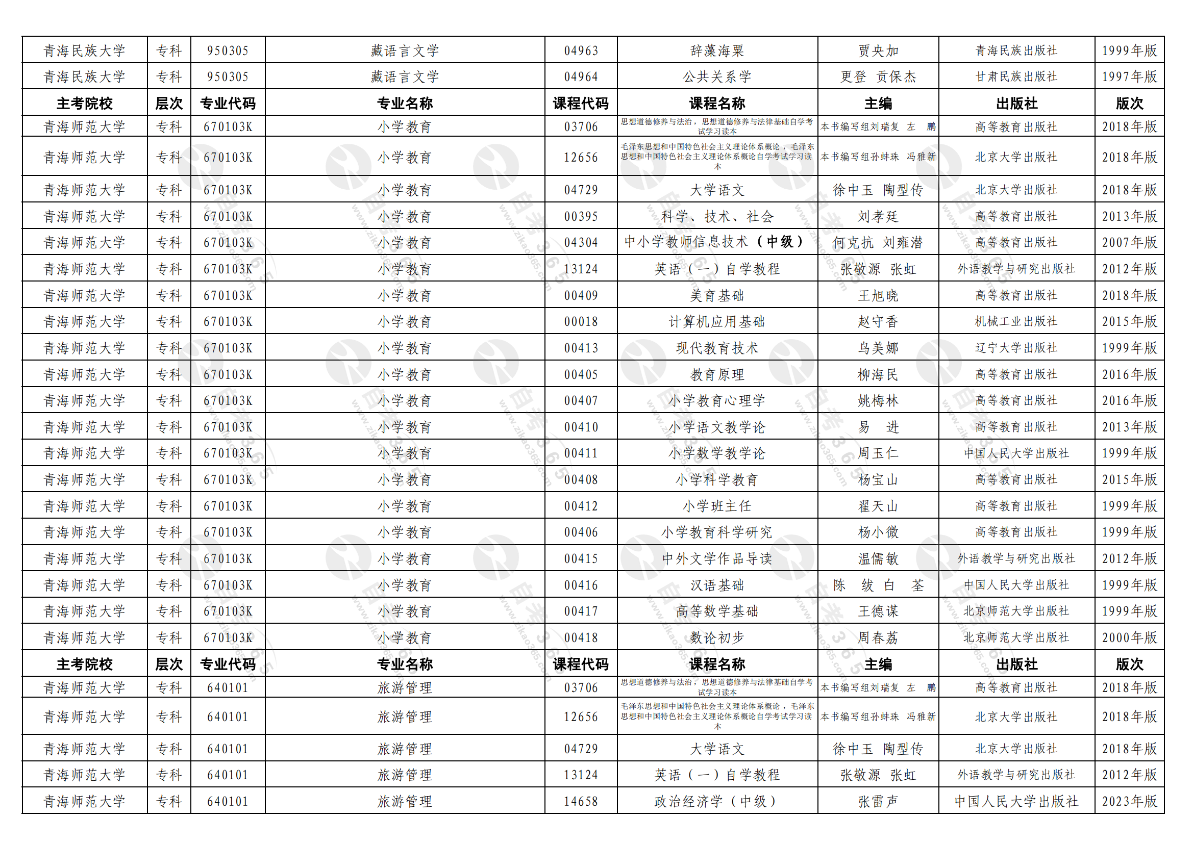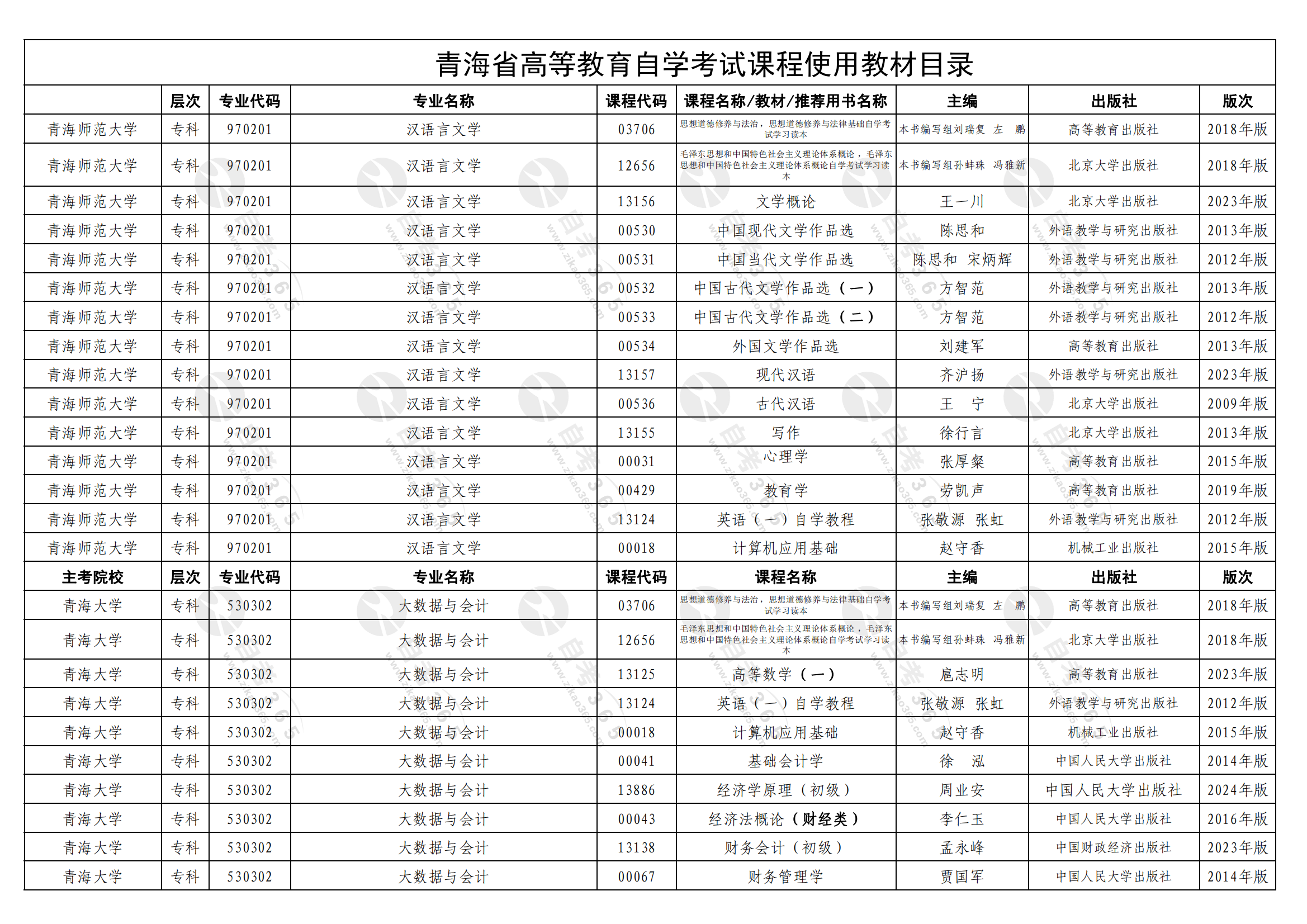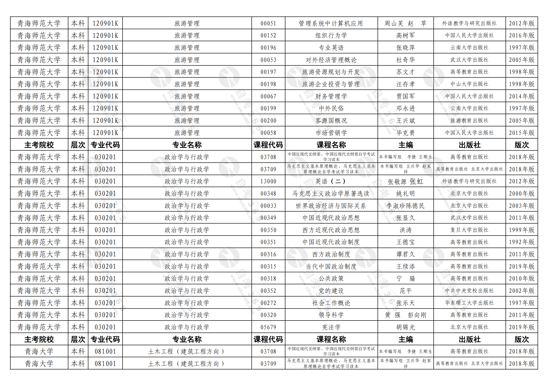 2026年上半年云南省第95次高等教育自学考试开考课程使用教材目录