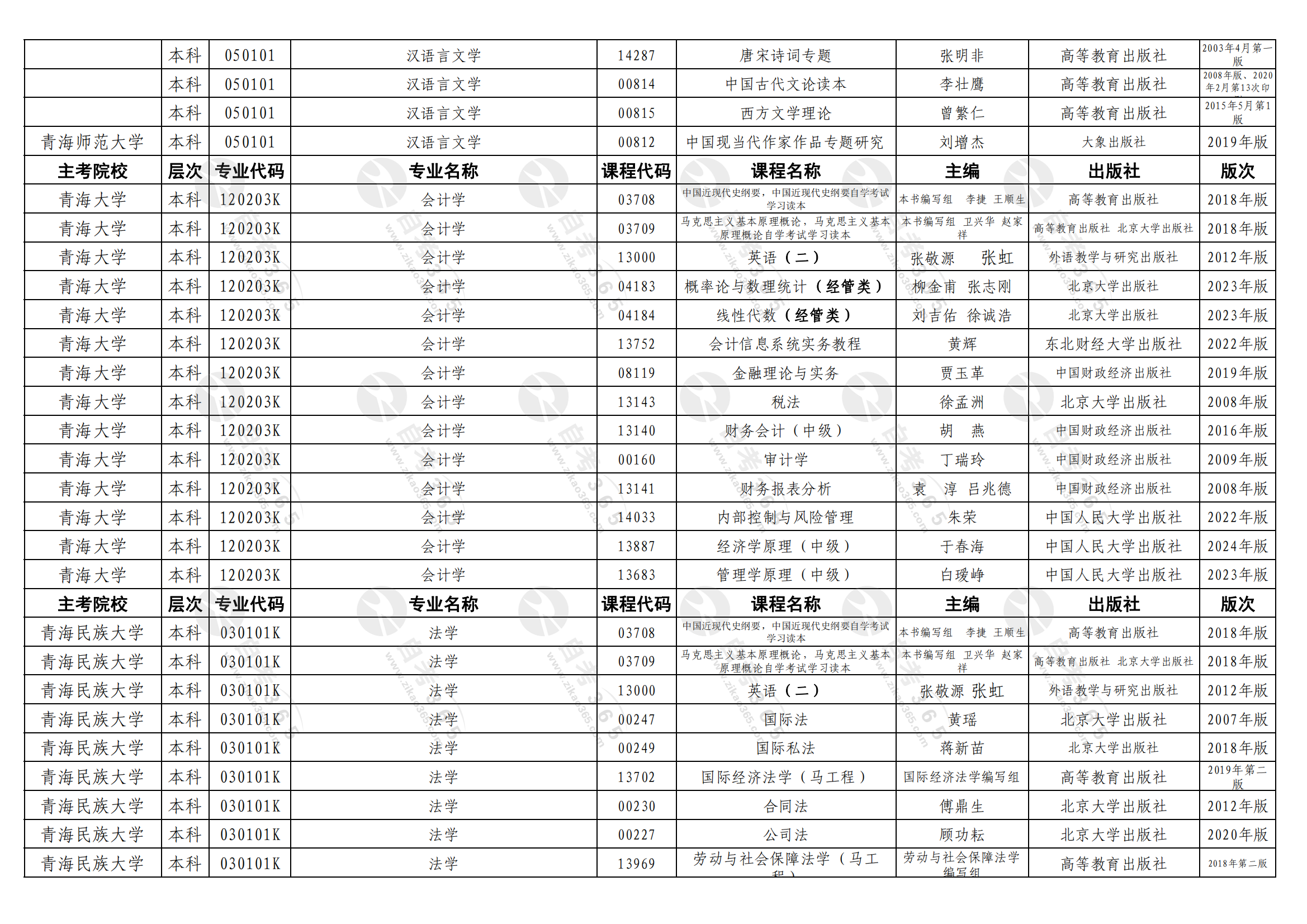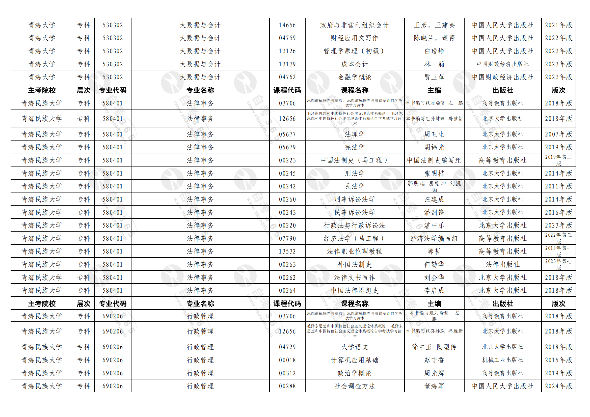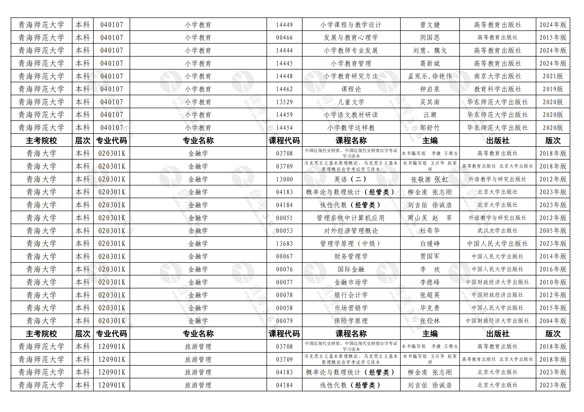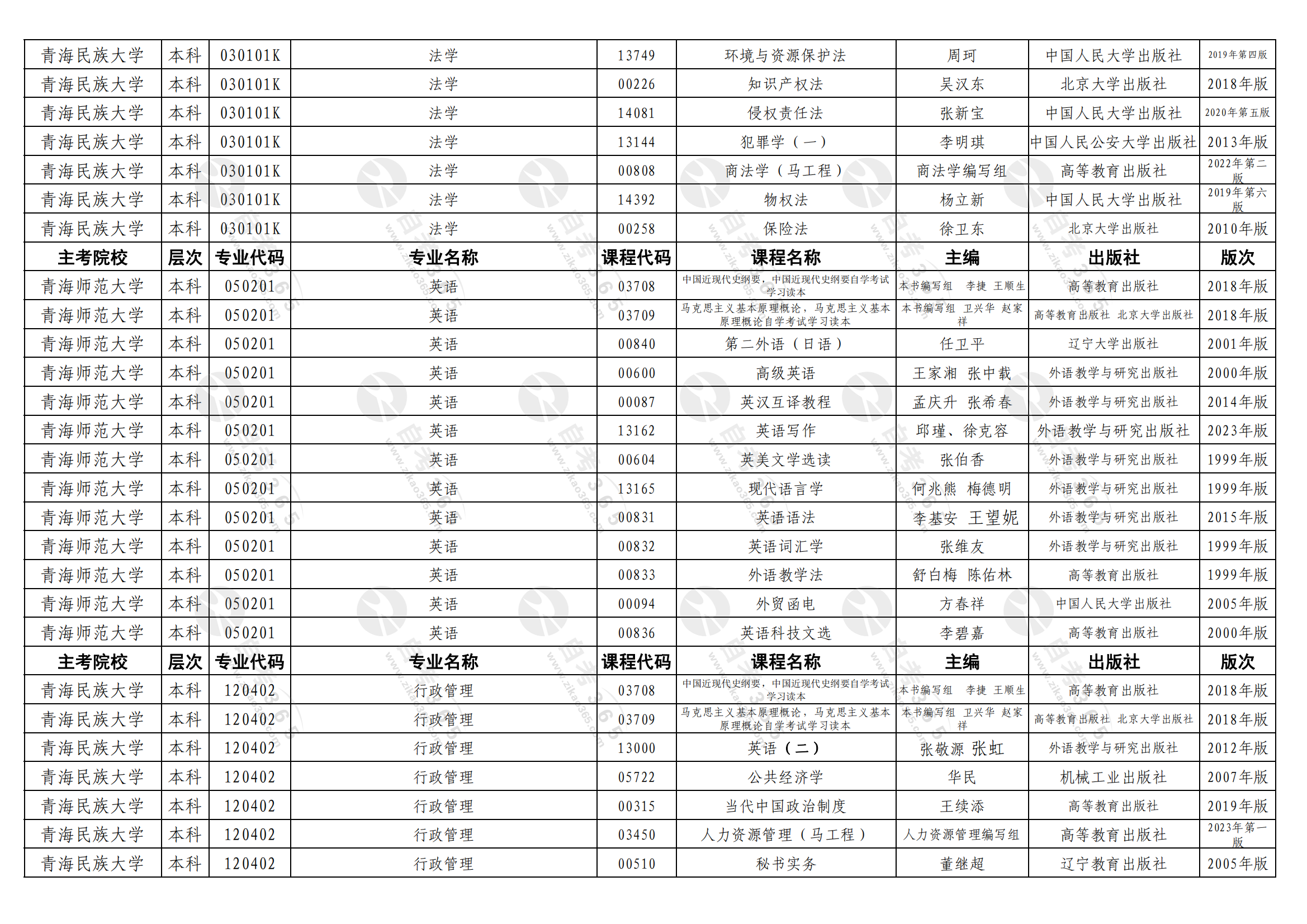 2025年下半年云南省第94次高等教育自学考试开考课程使用教材目录