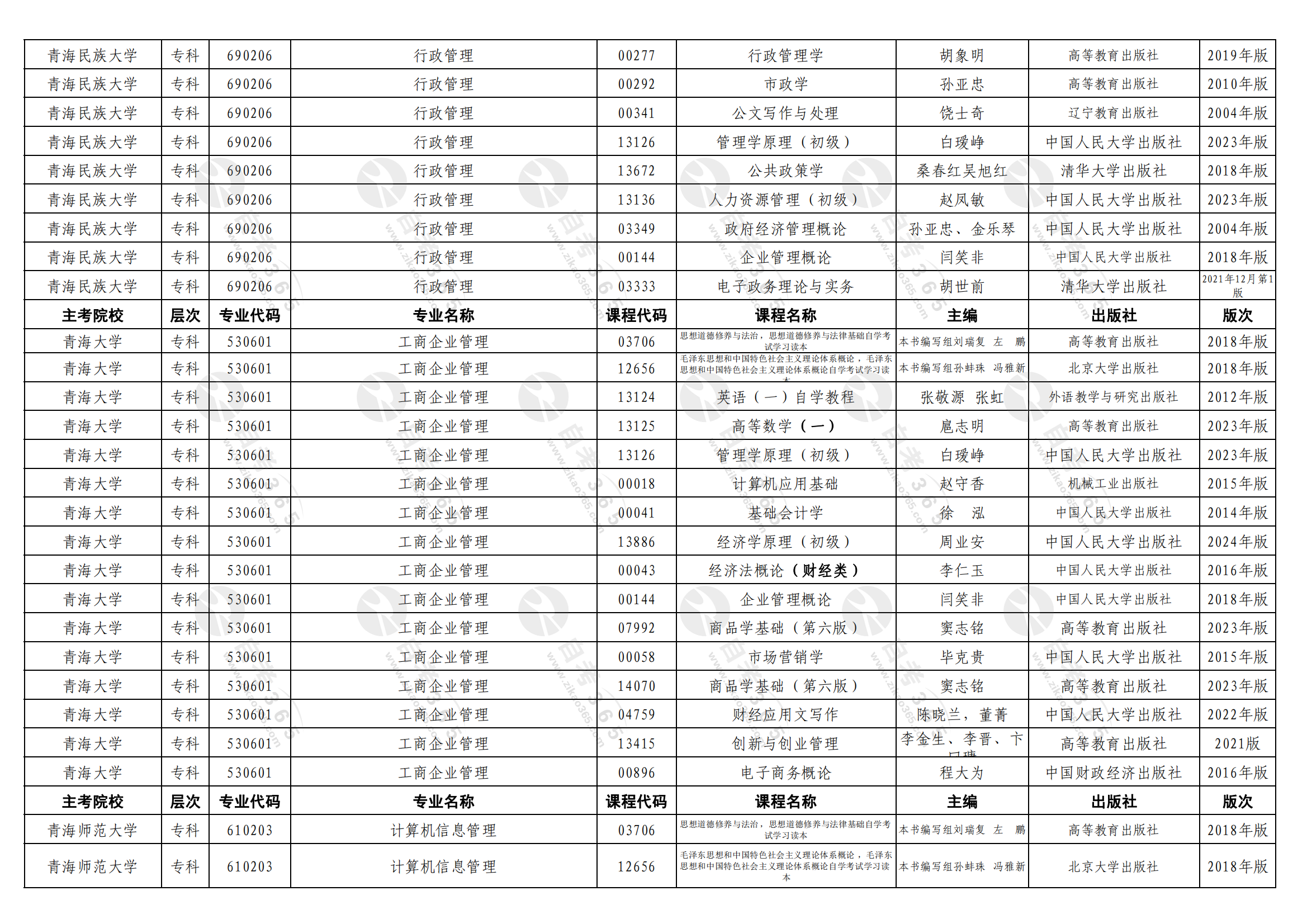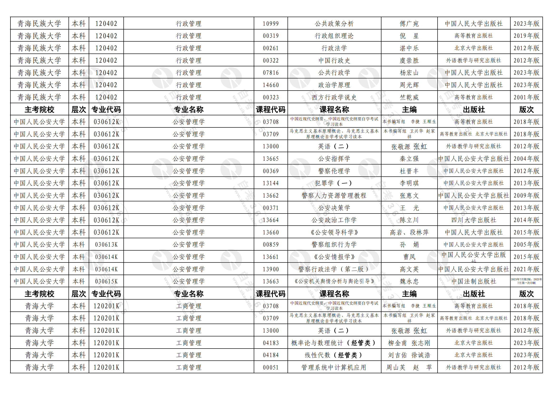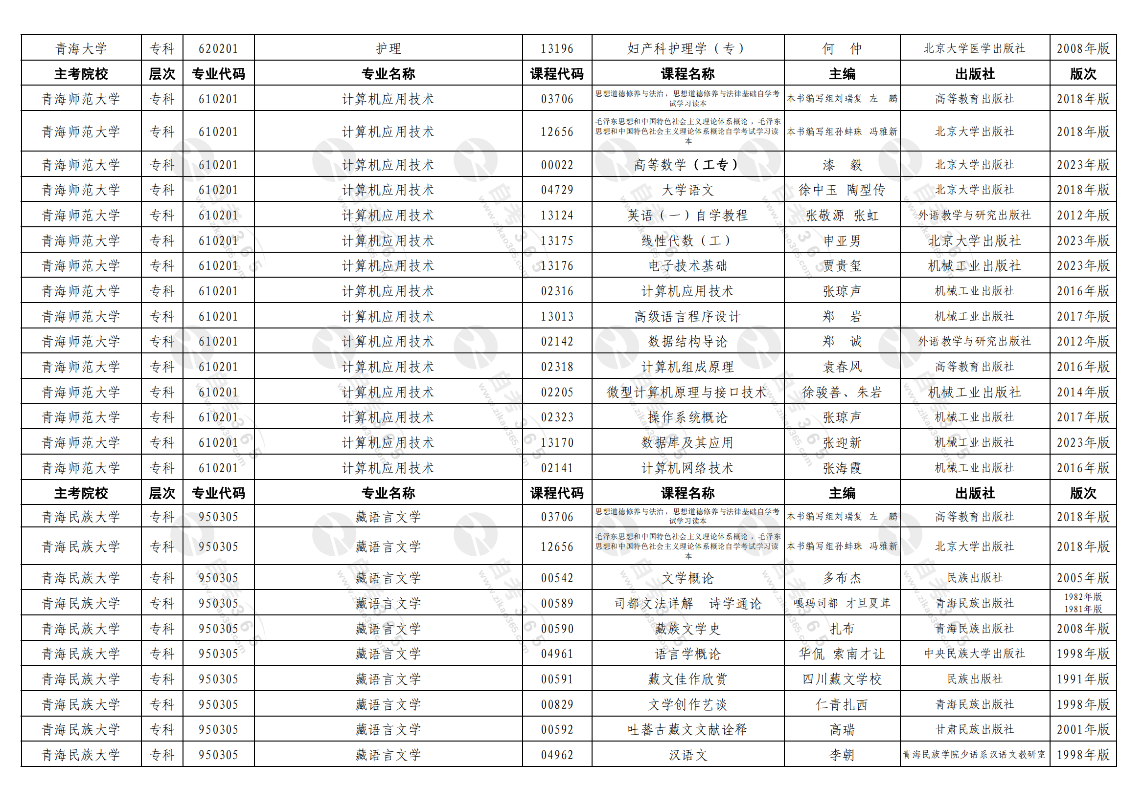 2025年下半年云南省第94次高等教育自学考试开考课程使用教材目录
