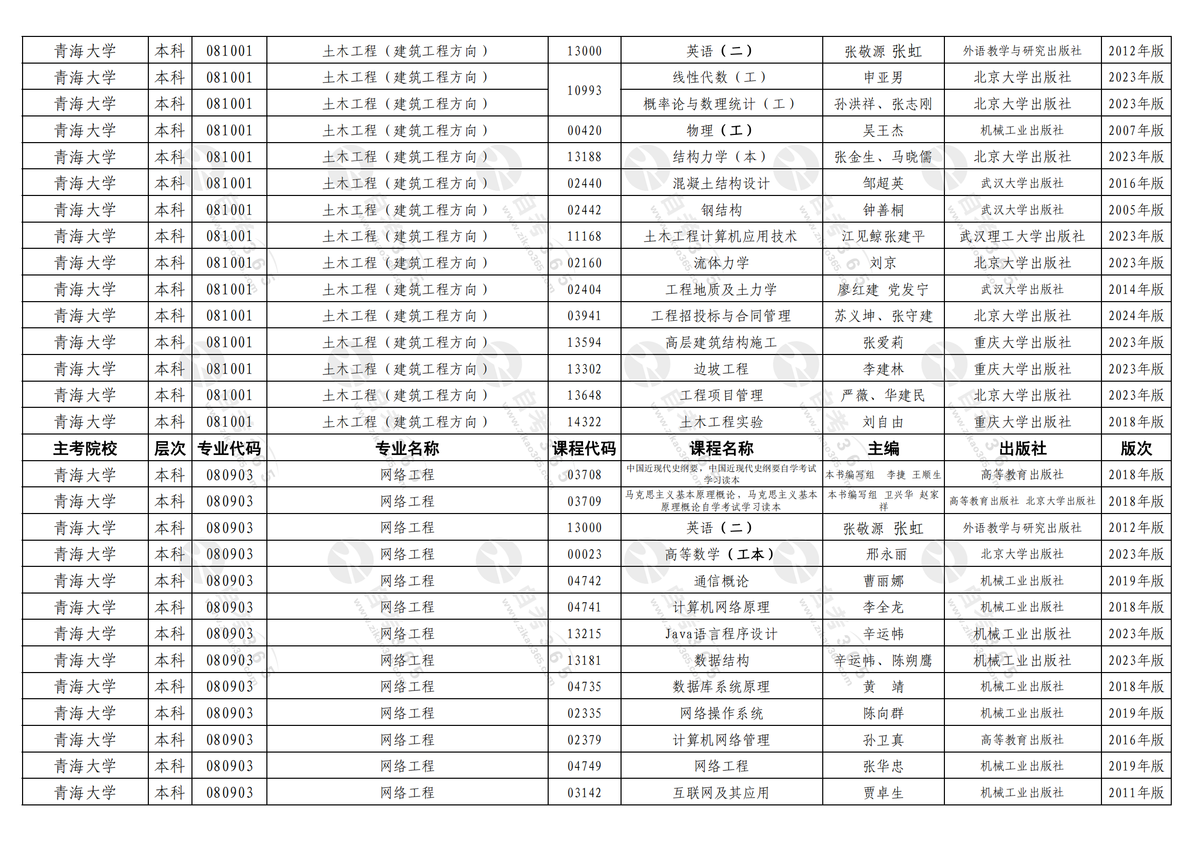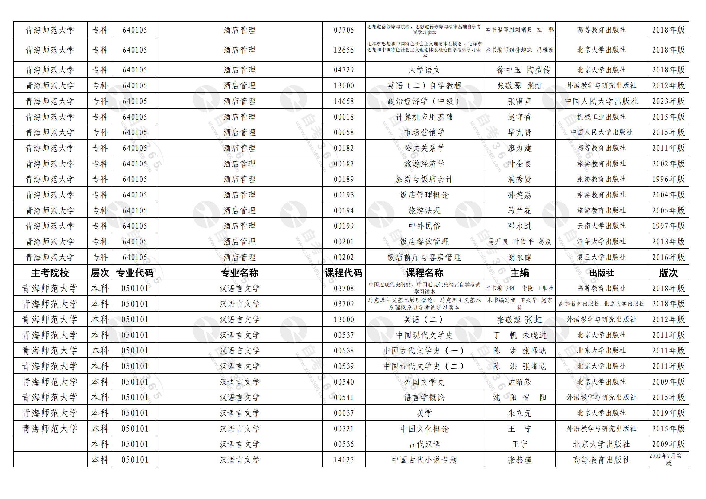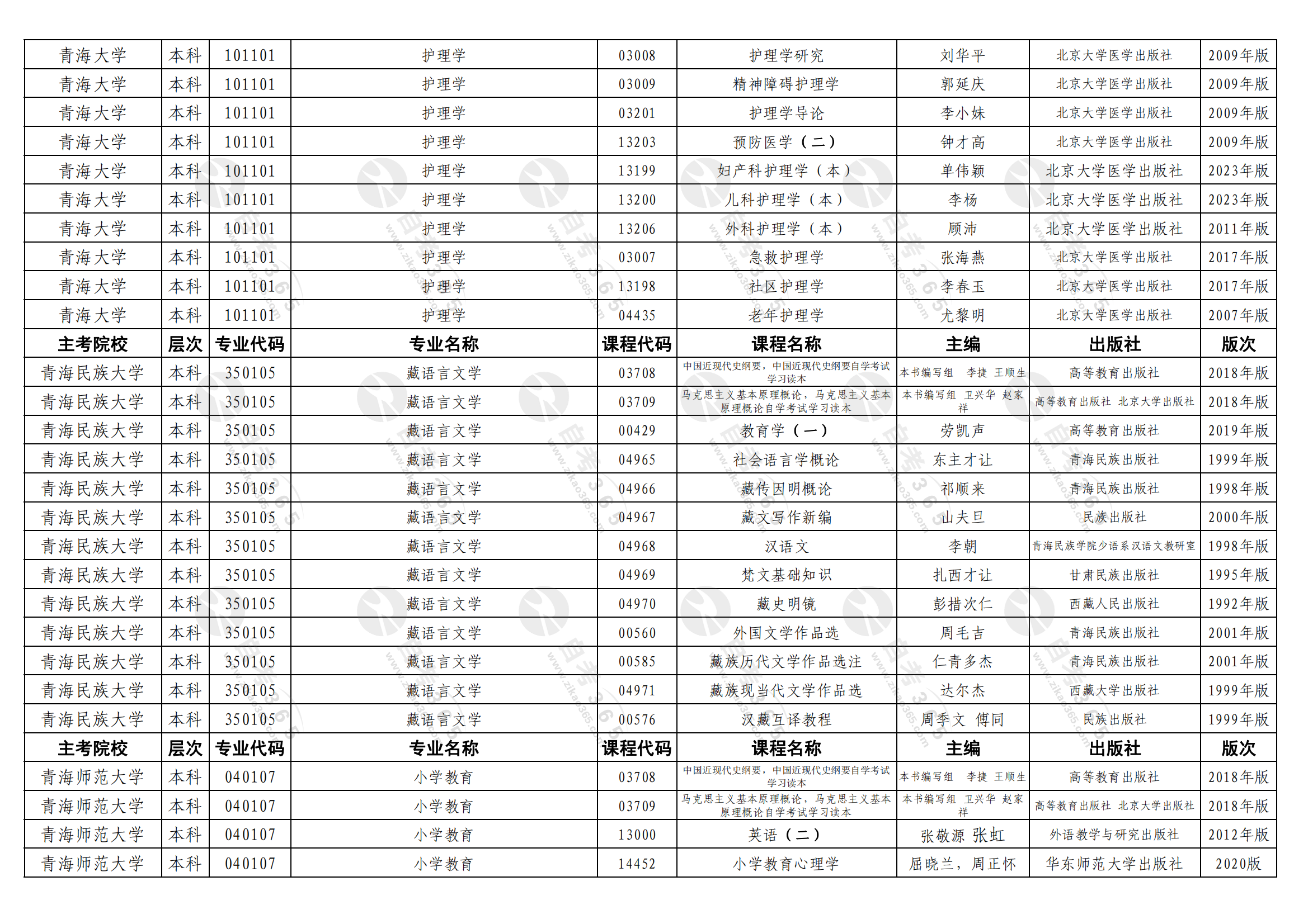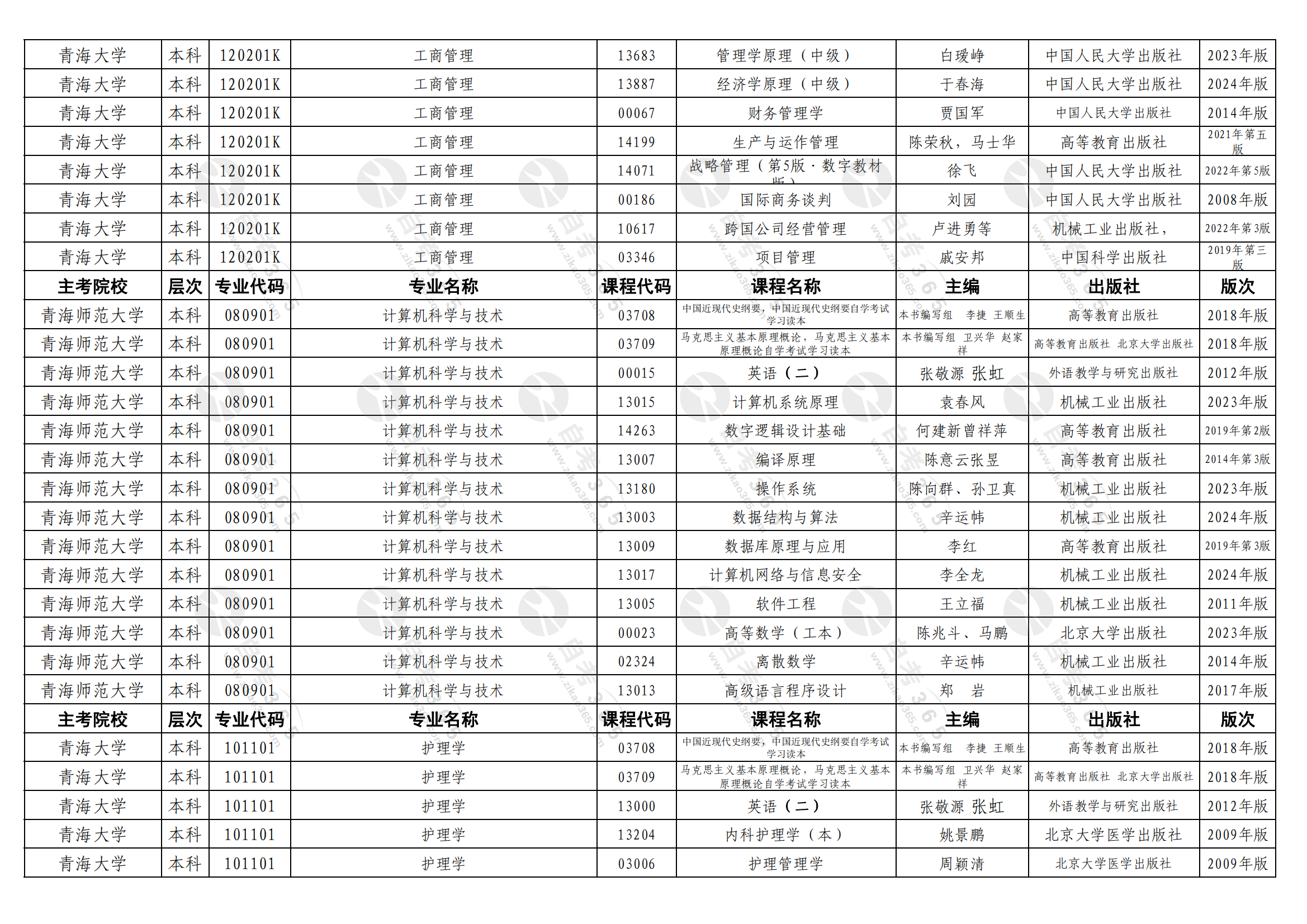 2025年下半年云南省第94次高等教育自学考试开考课程使用教材目录
