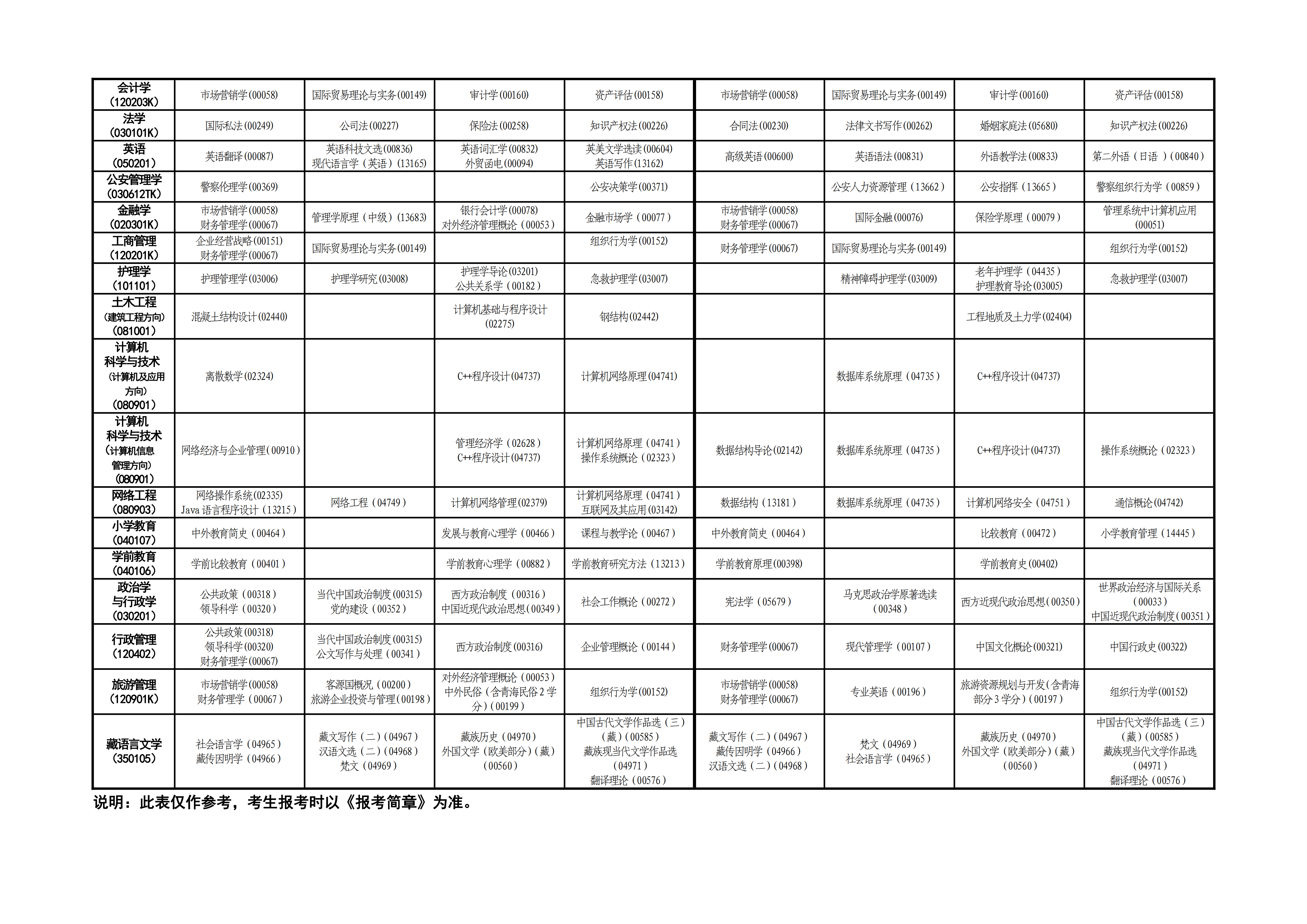 各省2026年自考专业及主考院校一览表(部分热门专业)