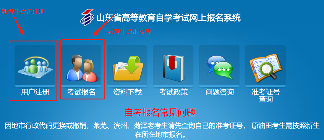 1、考生登录山东省教育招生考试院(),点击“网上报名”进入“山东省自学考试网上报名系统”。