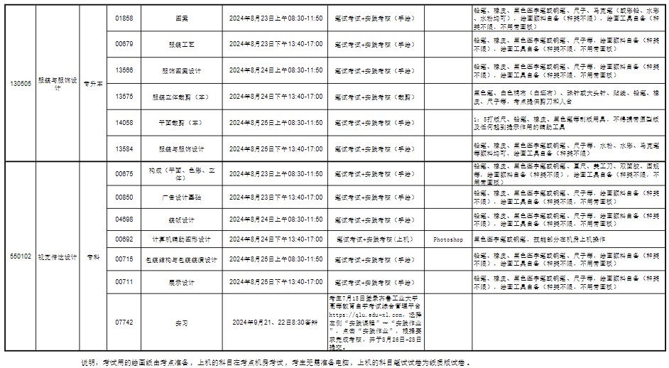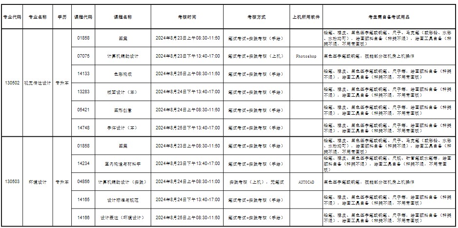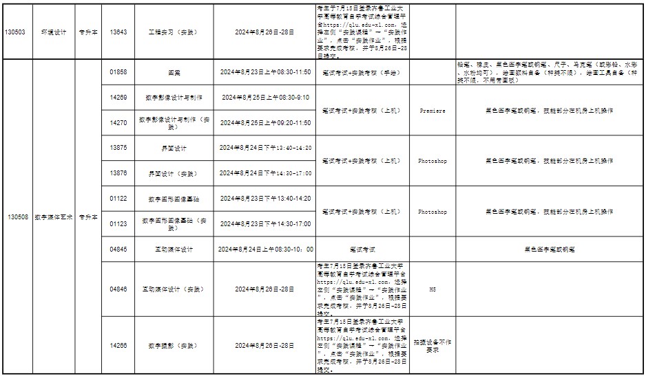 齐鲁工业大学2024年下半年高教自考实践环节考核方式及上机软件、工具表