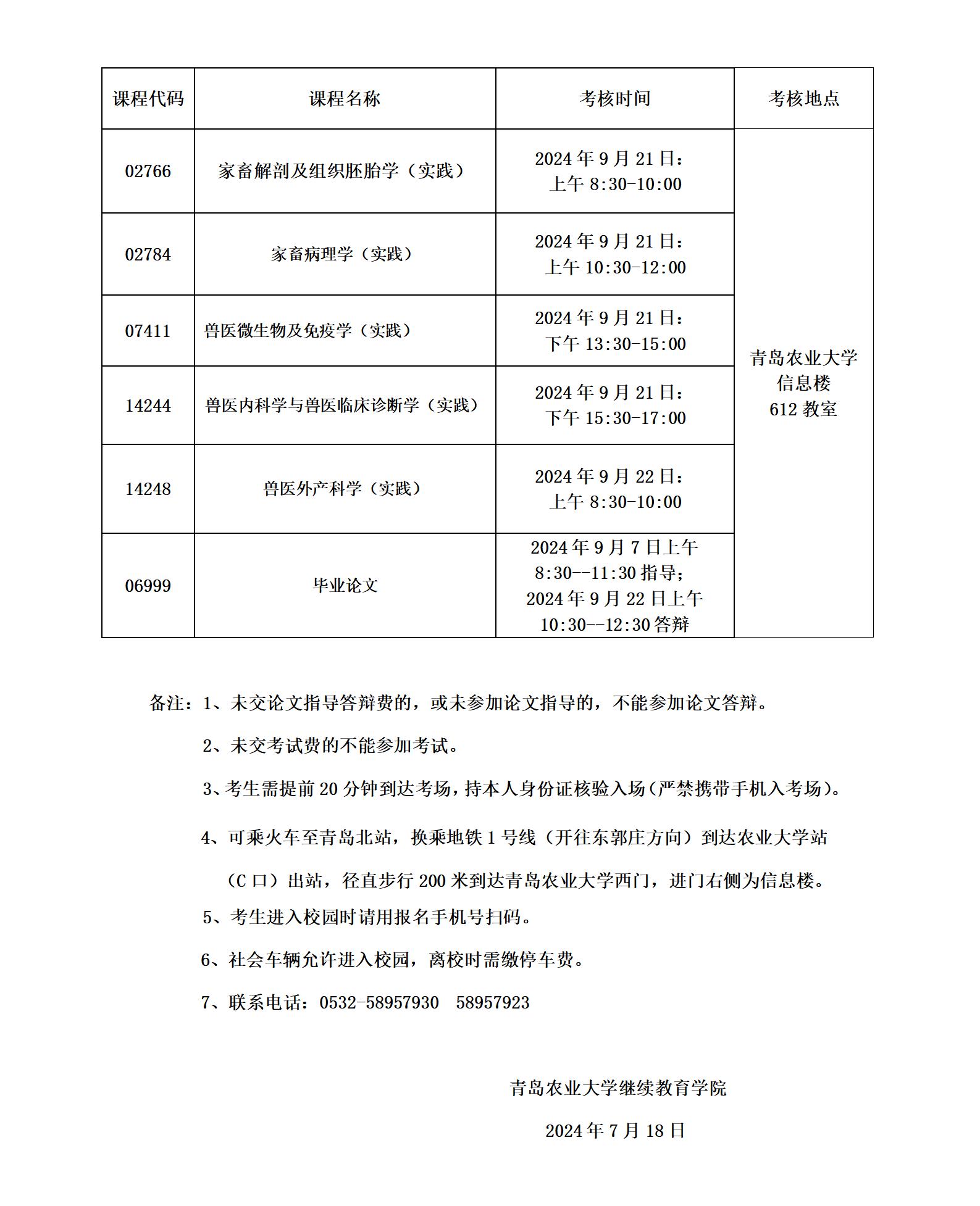 2024年下半年青岛农业大学自考动物医学(专升本)毕业及实践环节考核安排