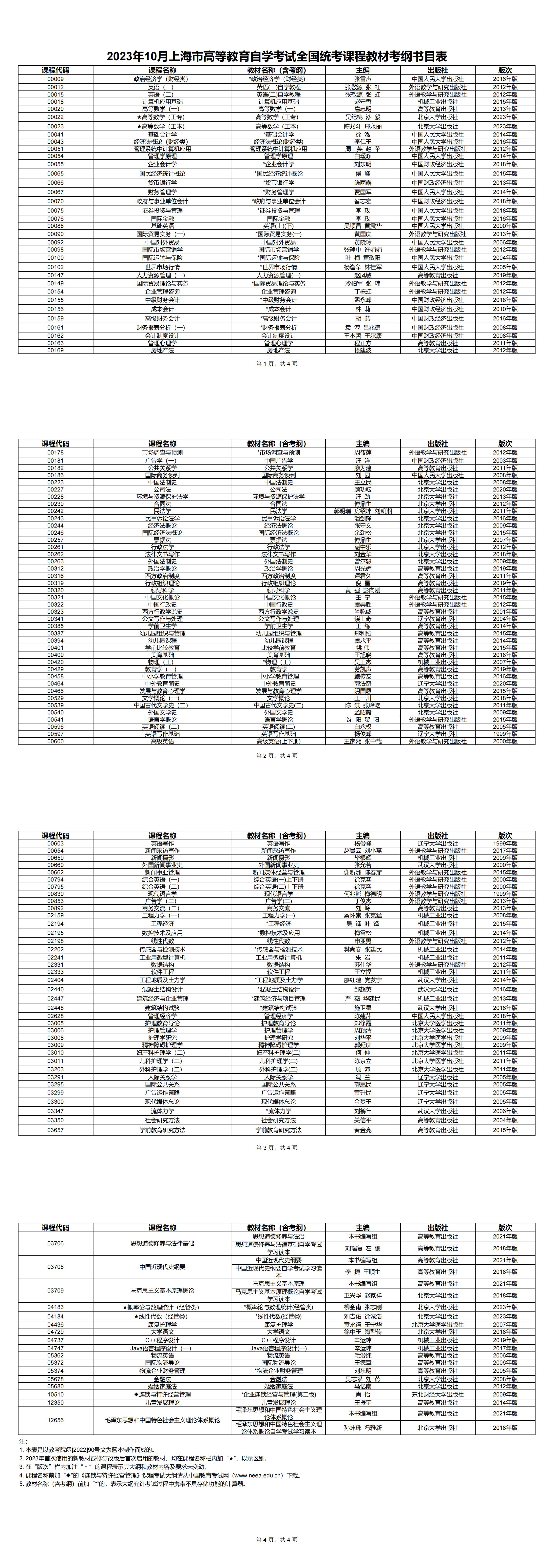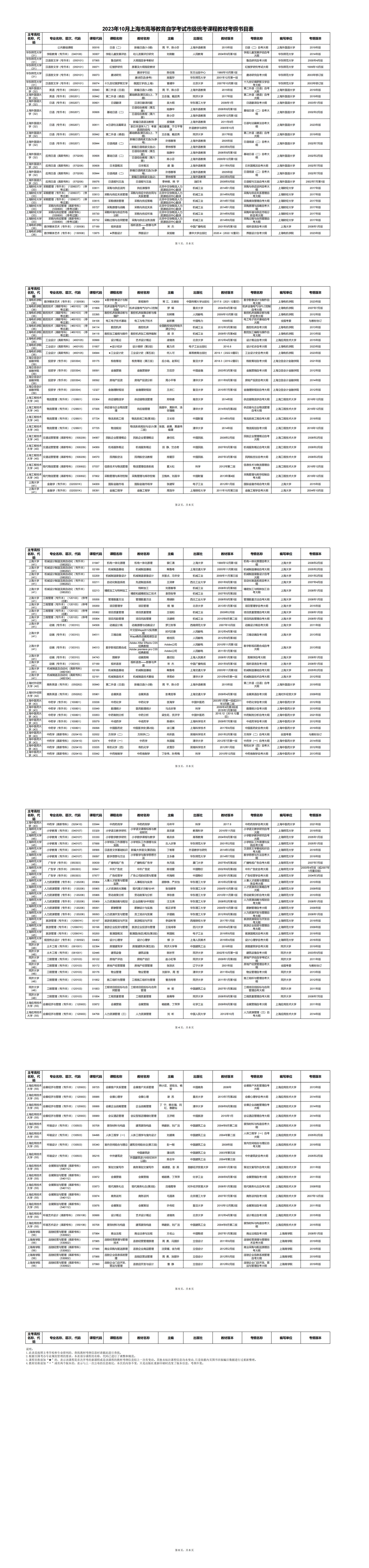 3.2023年10月上海市高等教育自学考试华东区协作统考课程教材考纲书目表(点击下载)