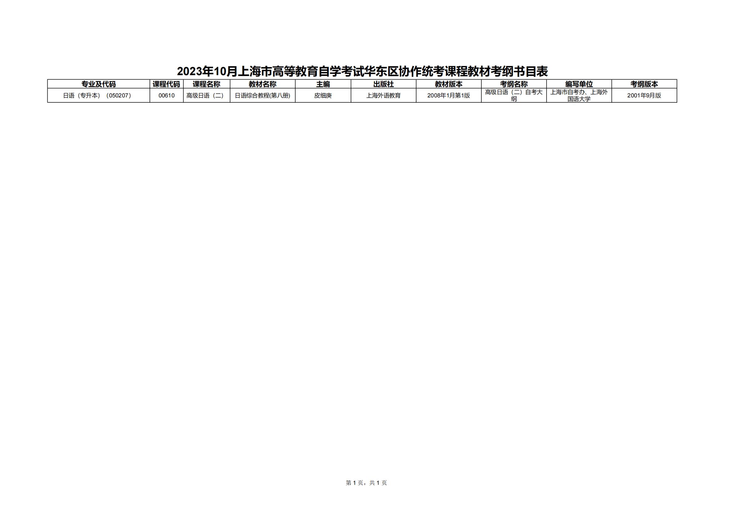 1.2023年10月上海市高等教育自学考试全国统考课程教材考纲书目表(点击下载)