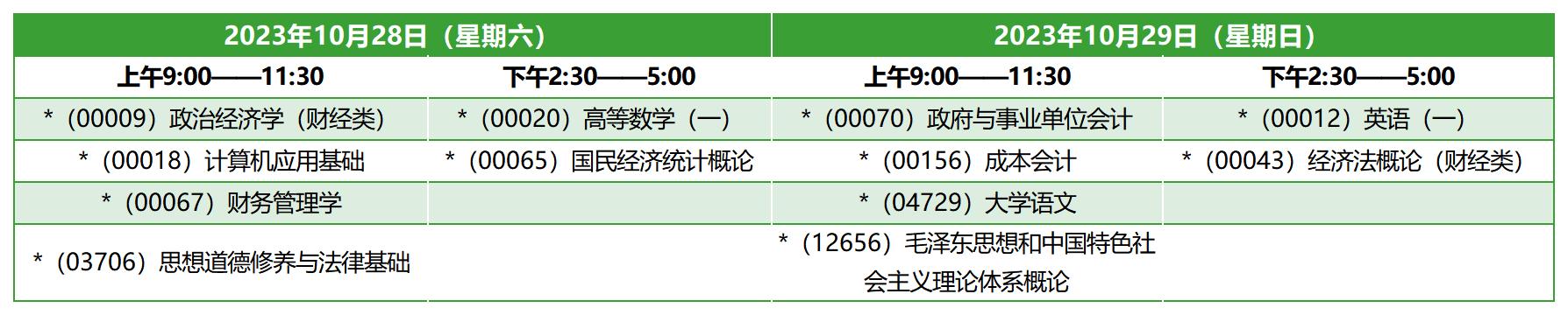 2023年10月上海自考专科大数据与会计考试安排
