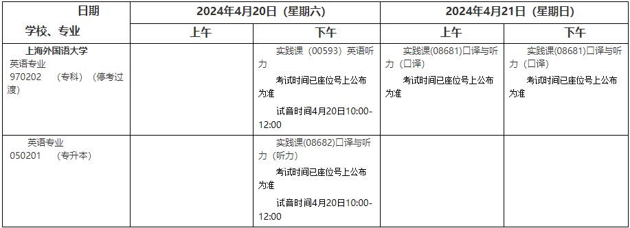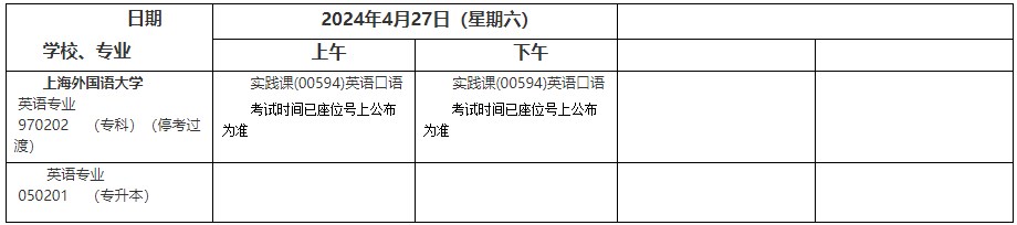 2024年4月上海市高等教育自学考试上海外国语大学各专业课程考试日程安排表(第三周)