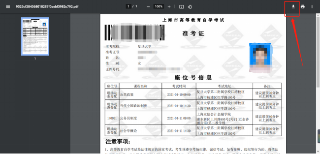 确认信息无误后,点击右上角的【下载】图标,即可保存准考证。