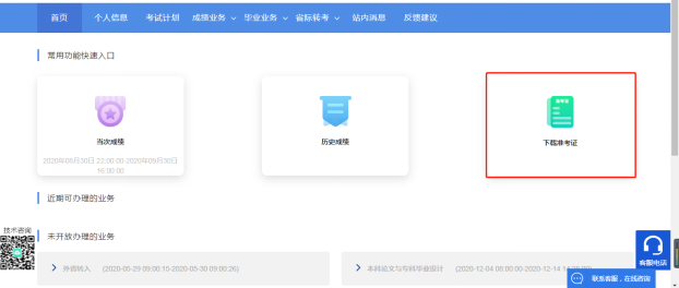 登录后,点击首页的准考证按钮,进入准考证下载引导页;