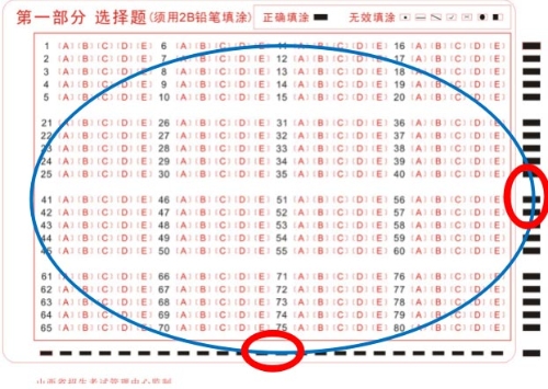 黑色框是图像定位点,扫描仪通过图像定位点确认答题卡的方向与位置,考生严禁在图像定位点位置随意涂写。