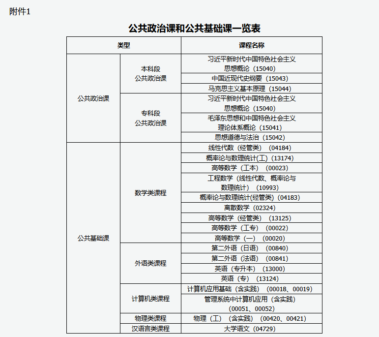 第二条 高等教育自学考试课程分为理论课(公共政治课、公共基础课、专业课)和实践性考核课程,公共政治课和公共基础课具体见附件1。