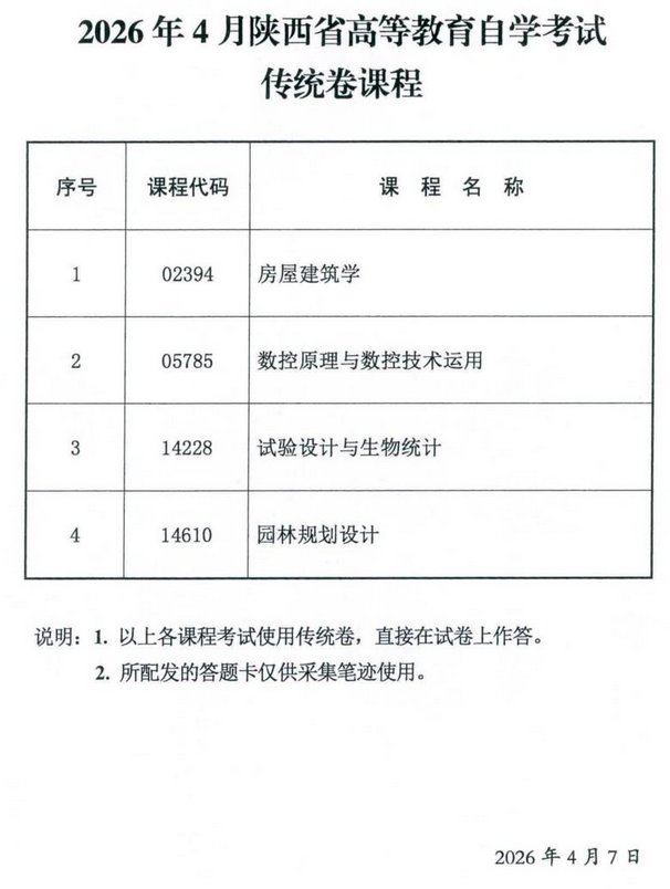 首页 > 考试安排> 陕西考试安排 > 2026年4月陕西省自学考试专用答题卡课程、