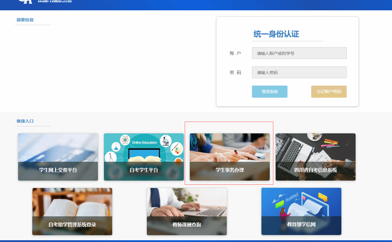 (一)进入首页右上角“西财在线入口—学生事务办理—学位申请”(网上申请须使用谷歌或火狐浏览器)