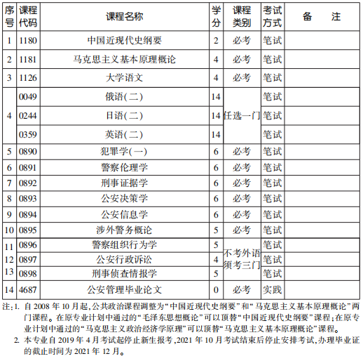 2022年4月天津自考本科公安管理专业计划(停考过渡)