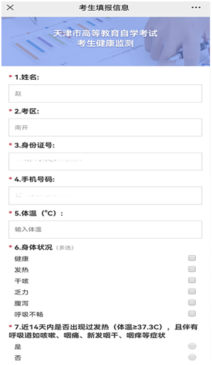 4月2日起登录“天津市高等教育自学考试考生健康监测”系统,如实填写相关信息,并做到每日更新,否则,不得参加考试。