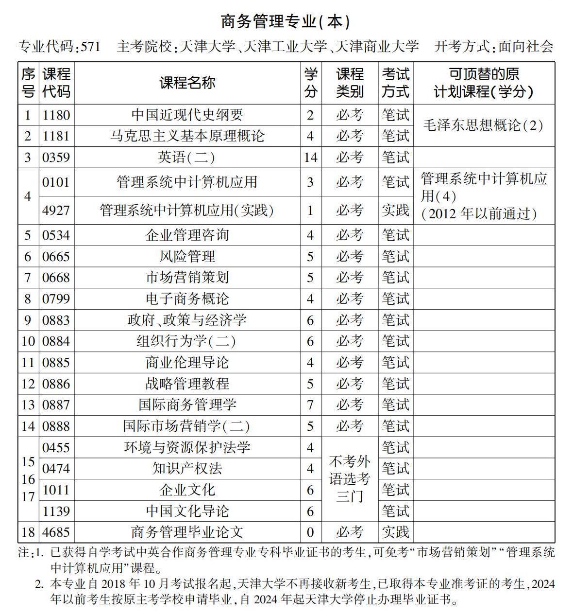 主考院校:天津商业大学 、天津工业大学 、天津大学[停考过渡]