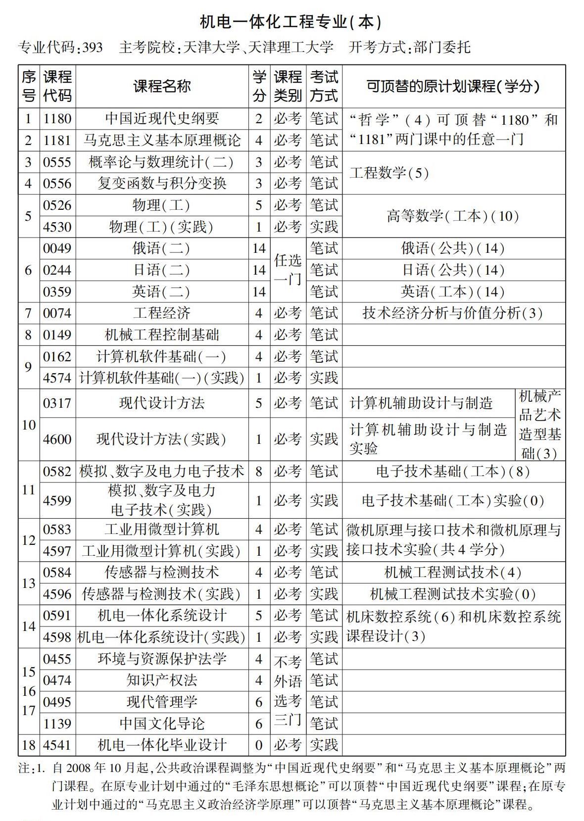 2022年10月天津自考本科机电一体化工程专业计划