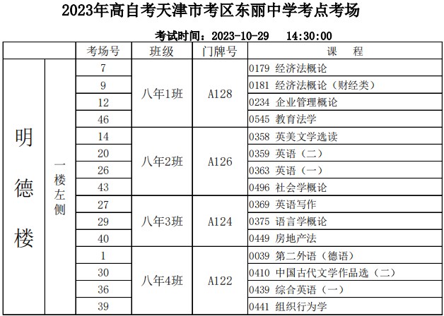 点击查看:2023年下半年天津市高等教育自学考试考点考场示意图