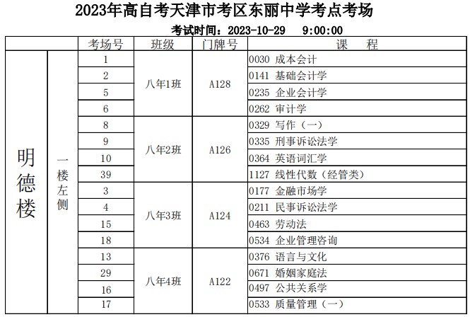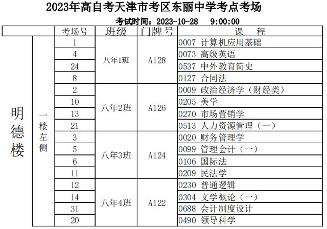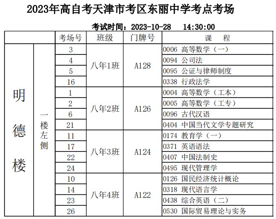 10月28日-29日举行的2023年下半年天津自学考试,共有18个考区40个考点,其中,天津市东丽区共有2个考点,分别是鉴开中学考点、东丽中学考点,考生在考试之前需要提前熟悉考点考场,为此,自考365网校整理了东丽中学考点考场分布示意图(点击下载附件),公布如下: