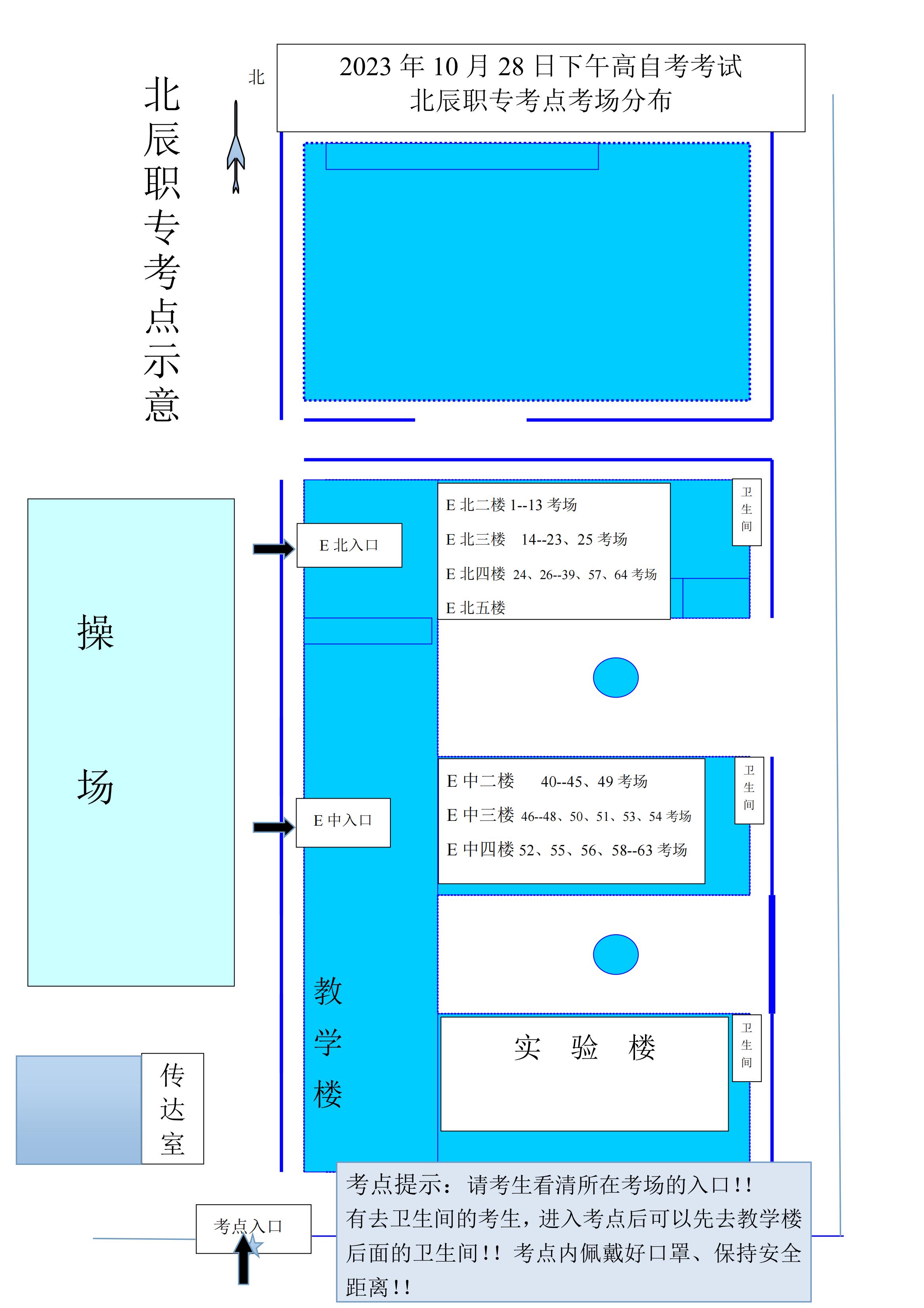 10月28日-29日举行的2023年下半年天津自学考试,共有18个考区40个考点,其中,天津市北辰区仅有1个考点,即北辰区中等职业技术学校(北辰职专)考点,考生在考试之前需要提前熟悉考点考场,为此,自考365网校整理了北辰区中等职业技术学校(北辰职专)考点考场分布示意图(点击下载附件),公布如下: