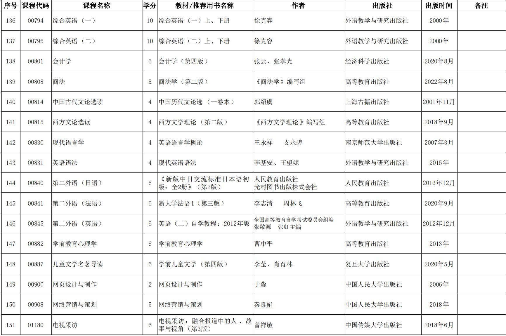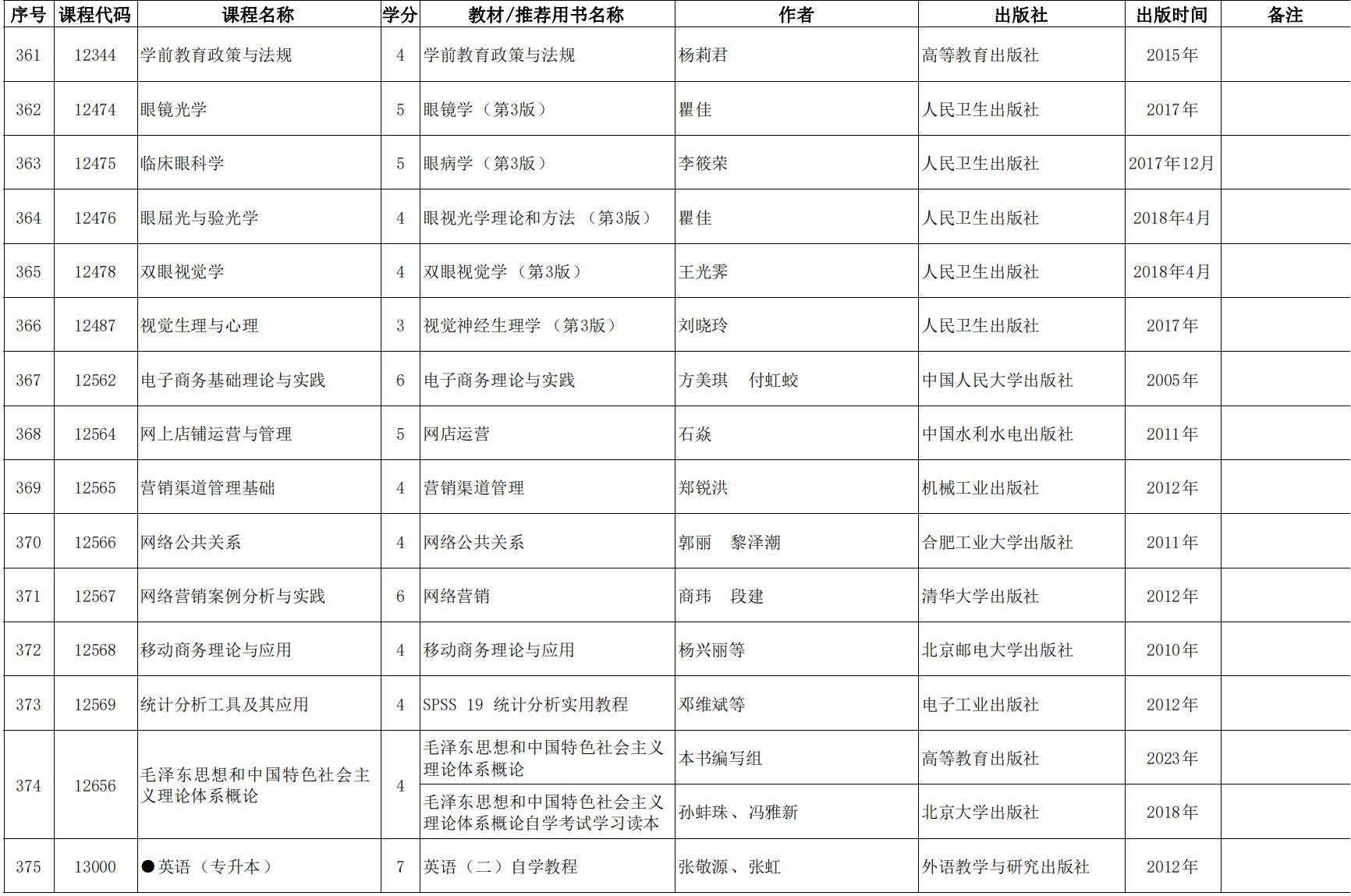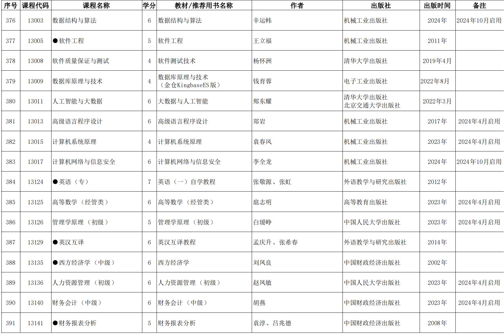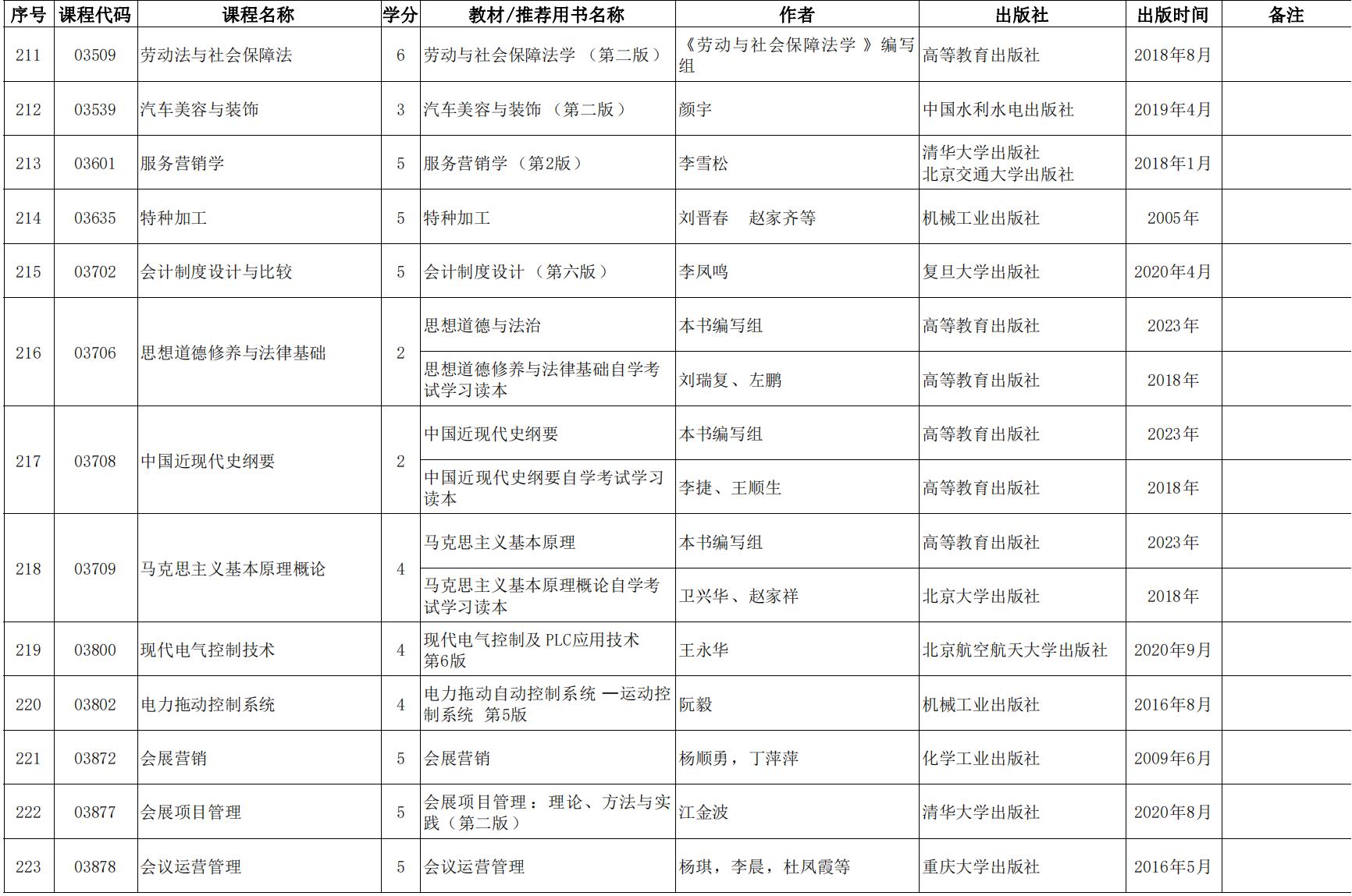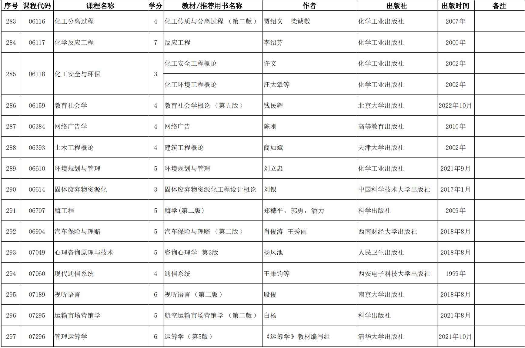 2024年天津市高等教育自学考课程使用教材表发布(点击下载),详情如下: