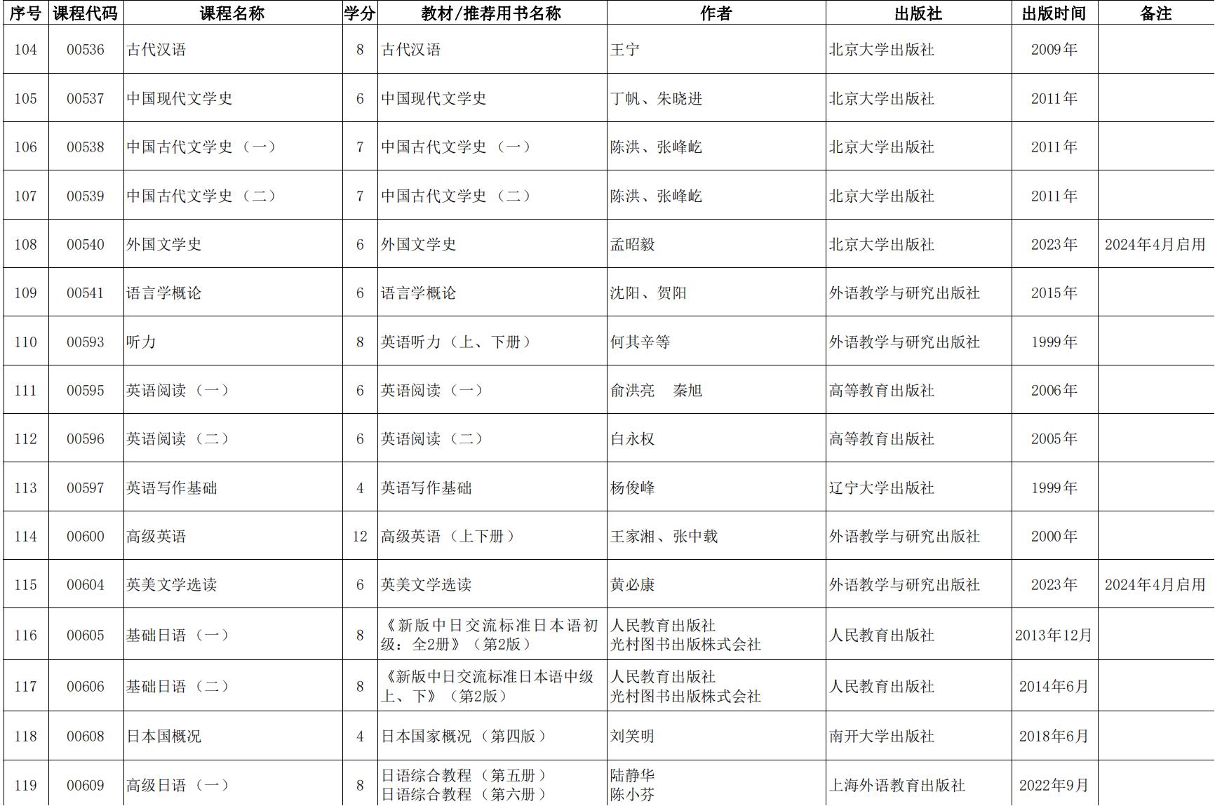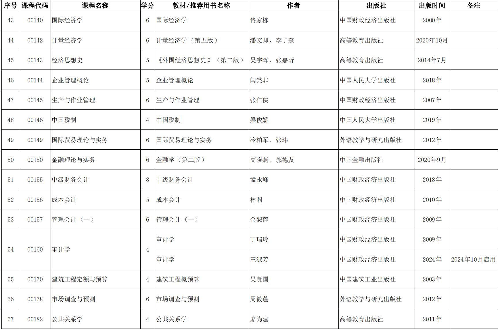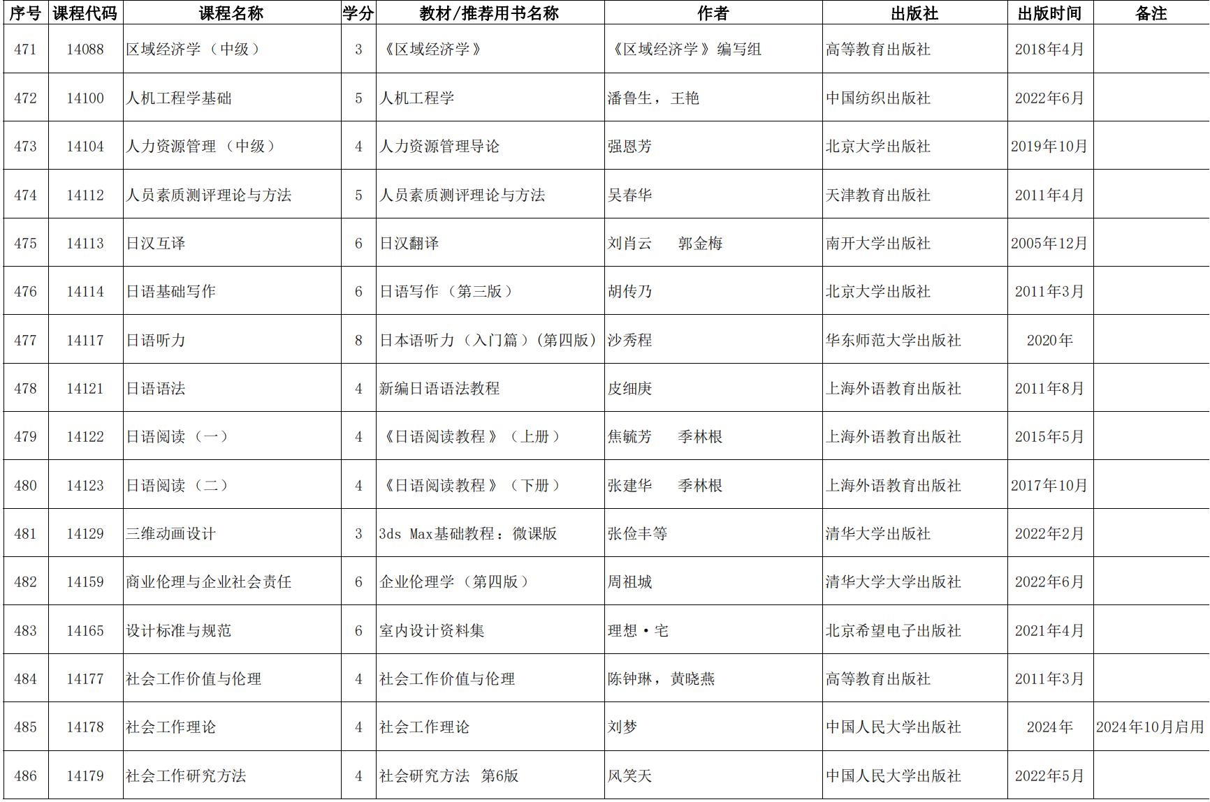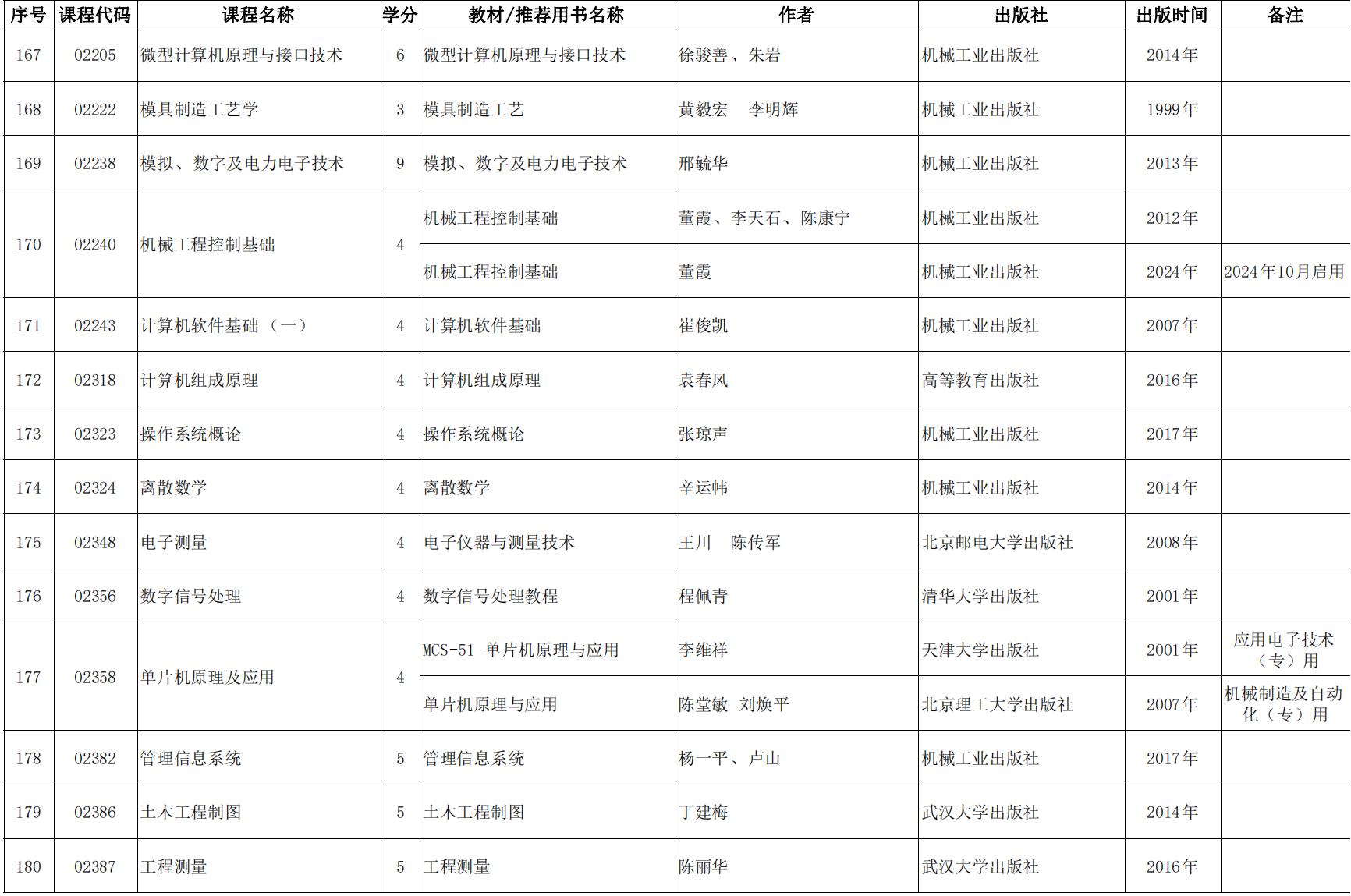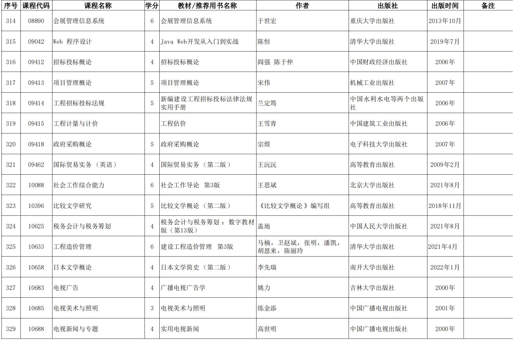 2024年天津市高等教育自学考课程使用教材表发布(点击下载),详情如下:
