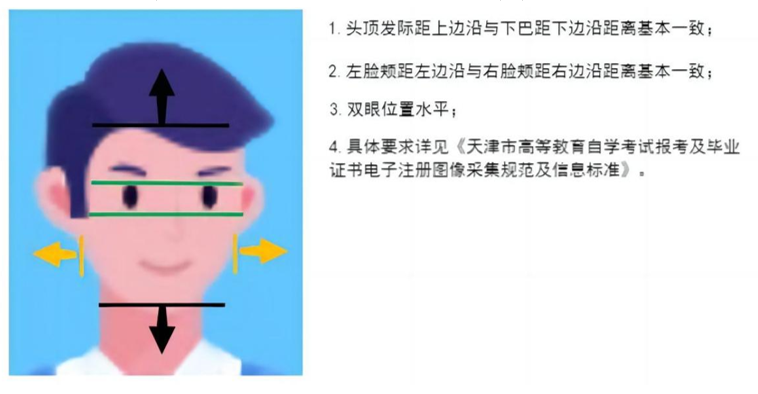3. 身份验证上传的证件照作为考生存档照片,将用于准考证打印及其他各项业务办理,须符合《天津市高等教育自学考试报考及毕业证书电子注册图像采集规范及信息标准》(附件1),不符合要求的照片将不能通过认证。