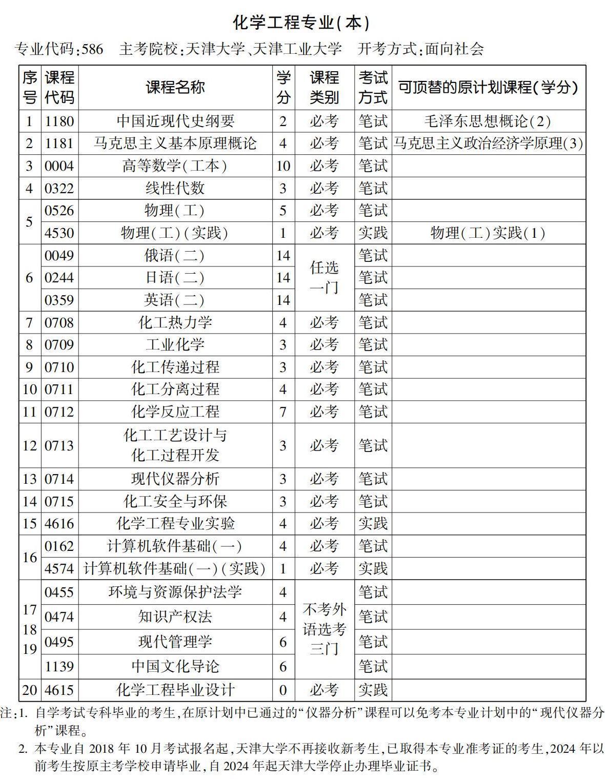 化学工程(本)(586)自2023 年 10 月考试报名起停止新生报名,2025年开始停止安排考试和办理毕业证。