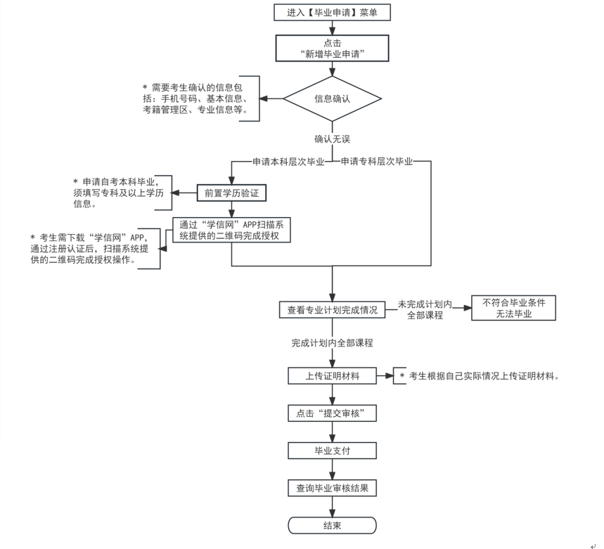 2. 毕业生在申请毕业时个人信息要保证准确无误(包括姓名、身份证号、性别、出生日期等),如有变动或错误须及时联系考籍所属考区提出申请并进行现场确认;
