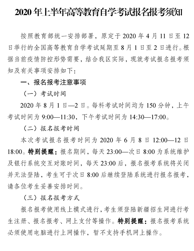 2026年上半年高等教育自学考试考前提醒