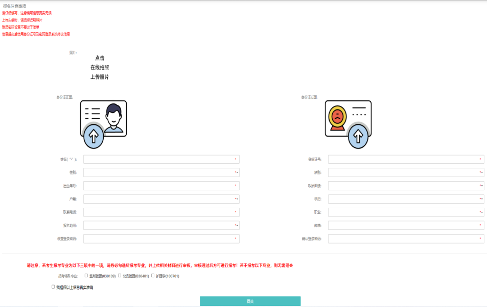 ⑤报考监所、公安、护理专业考生请准备规定的材料进行上传审核。