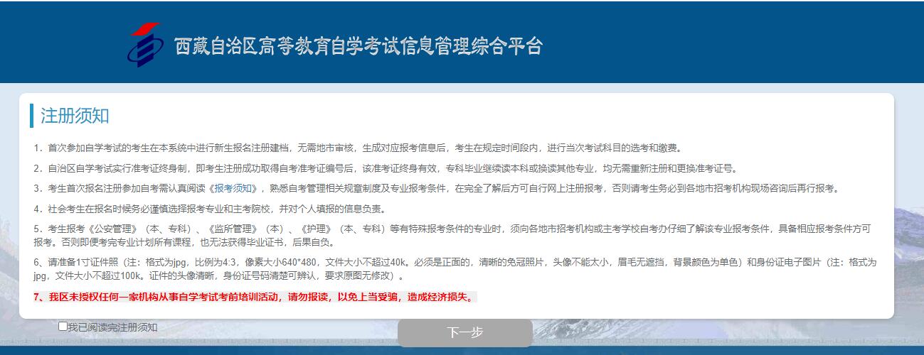 1、在西藏自治区教育考试院官网找到自学考试→自考信息管理综合平台→新生注册”进行相关档案注册。