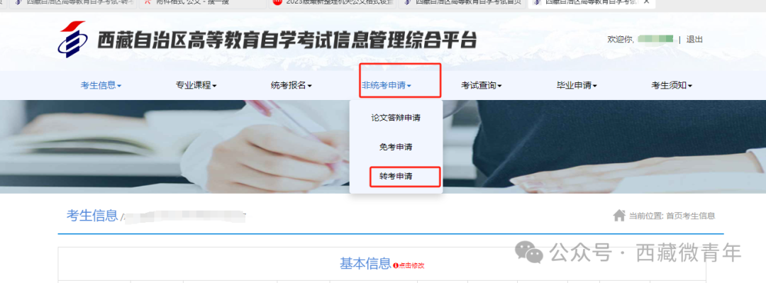 西藏自治区高等教育自学考试转考申请流程