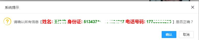 考生按要求上传本人身份证正反面图片,并完善个人基本信息后点击“保存”,系统自动弹出信息确认框。