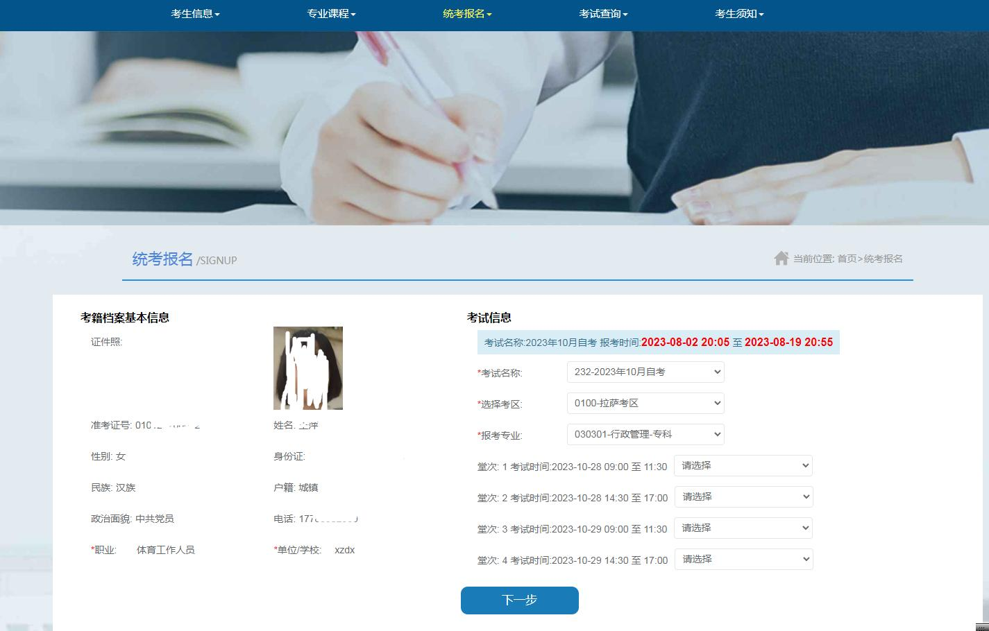 1、以前注册过西藏自考的考生登录需完善资料信息后方可报考。