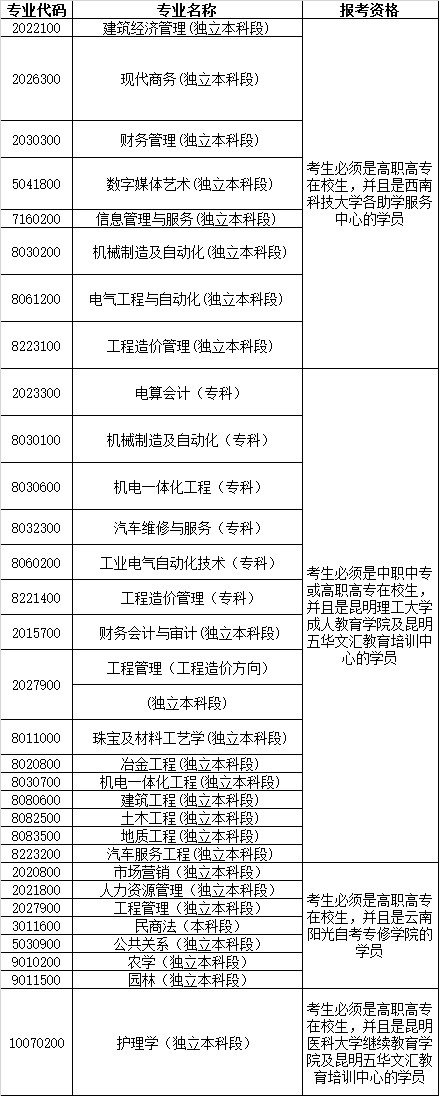 3、报考下列专业的考生,必须具备下列资格,否则不能取得毕业证书。