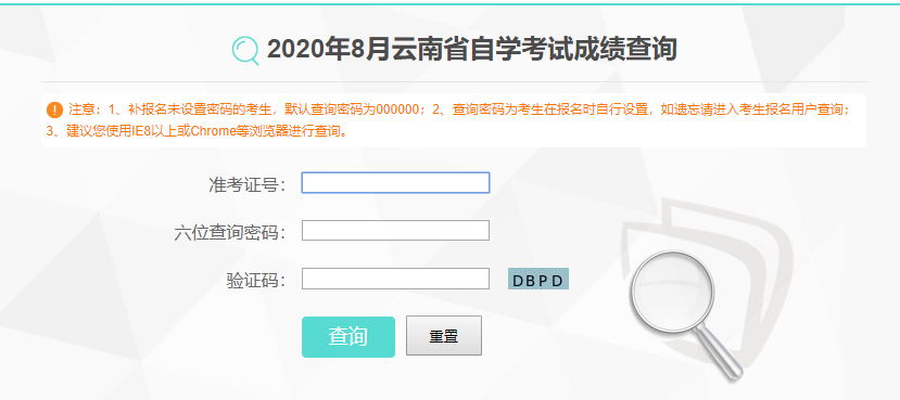 点击进入:2020年8月云南省怒江傈僳族自治州自考成绩查询入口