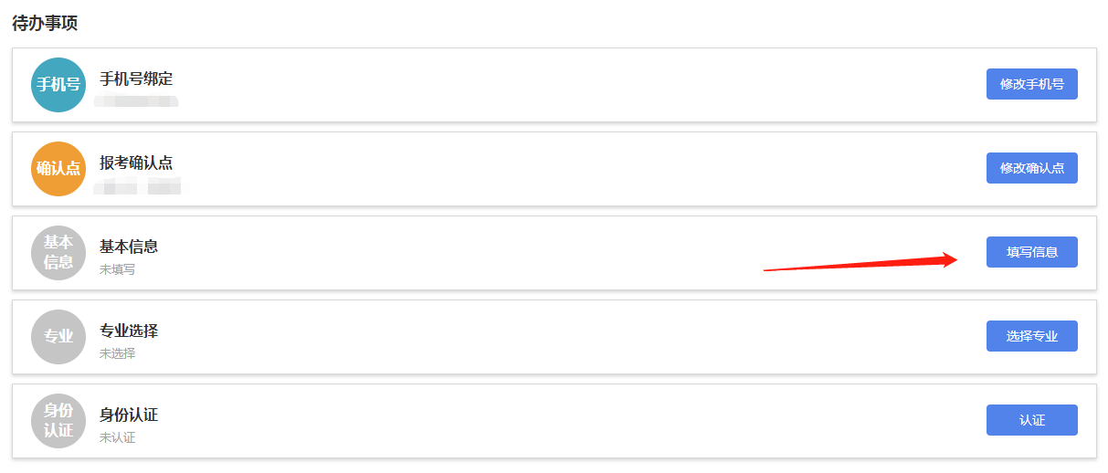 1.普通考生点击“填写信息”,进行基本信息完善