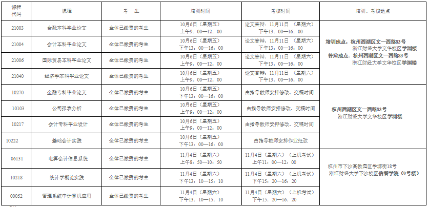 浙江财经大学2023年(下)高教自考实践性环节培训、考核安排